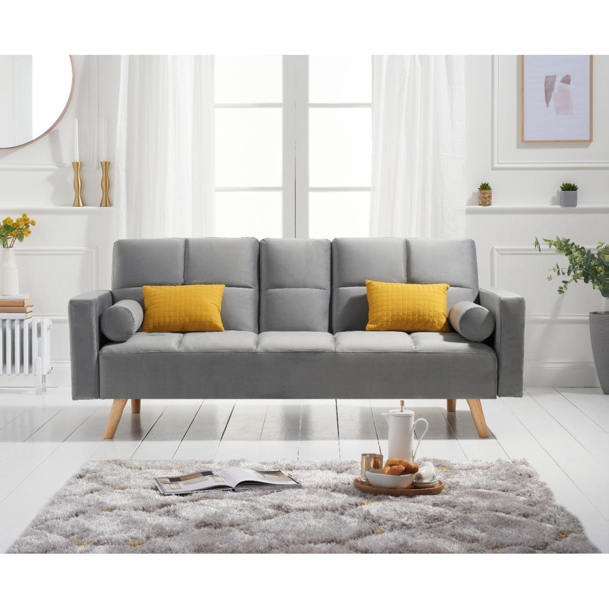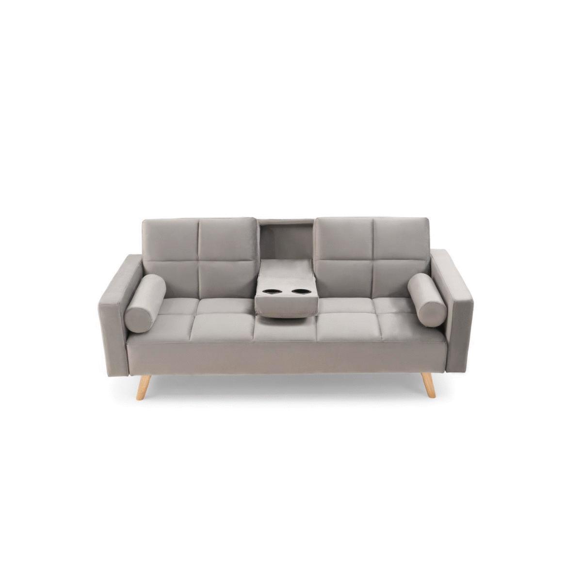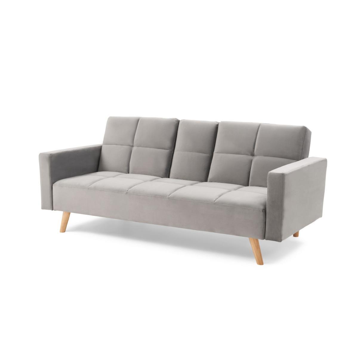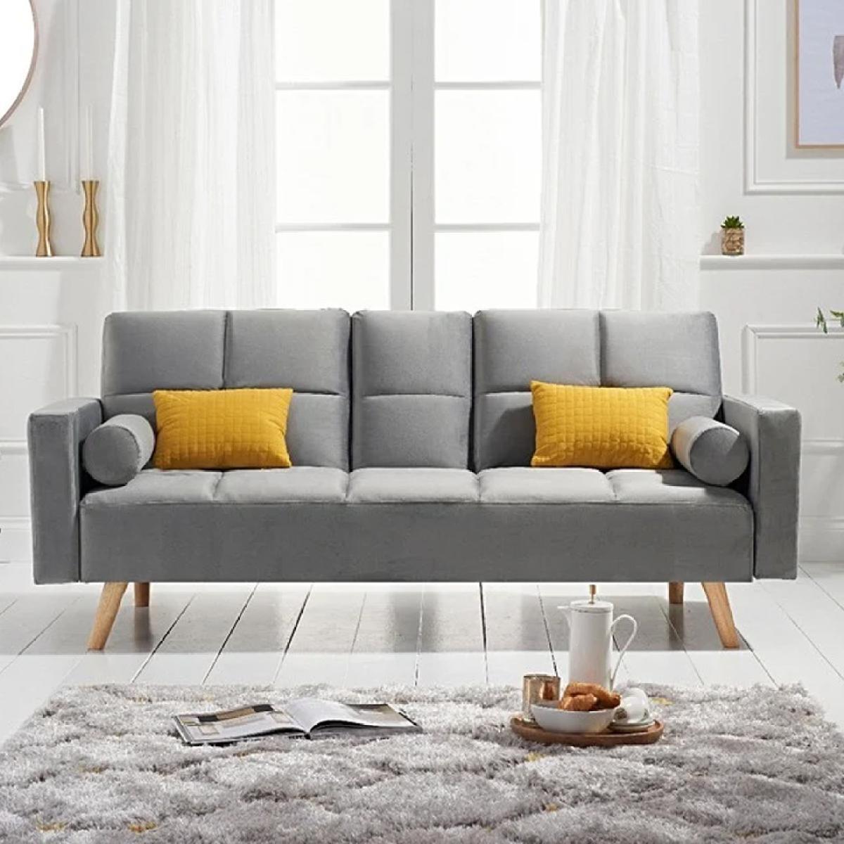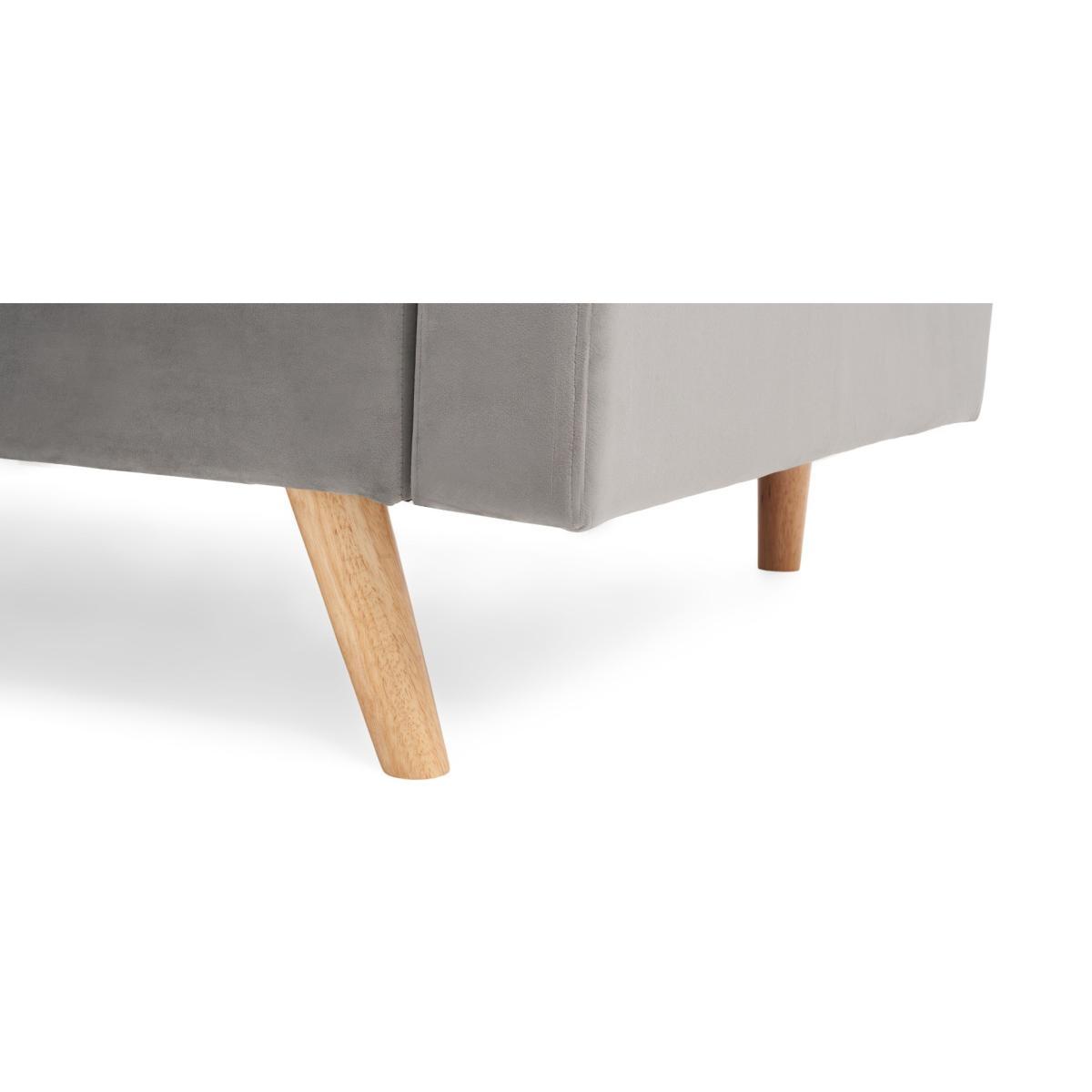 Seasons pass and trends come and go, but the styling of the Etta sofa is timeless. An exciting contemporary shape combines traditional upholstery, tufted seats and bolster cushions for extra comfort - whether as a sofa or a bed. Finished with iconic Chesterfield style buttoning that adds visual softness drawing your attention to the gorgeous fabric. Traditional quality upholstery with Chesterfield style buttoning. Stylishly inclined Oak legs. Comfortably seats three or sleeps two. Choose from classic velvet in blue, grey or green or modern grey linen. Just assemble the legs and your sofa is ready!