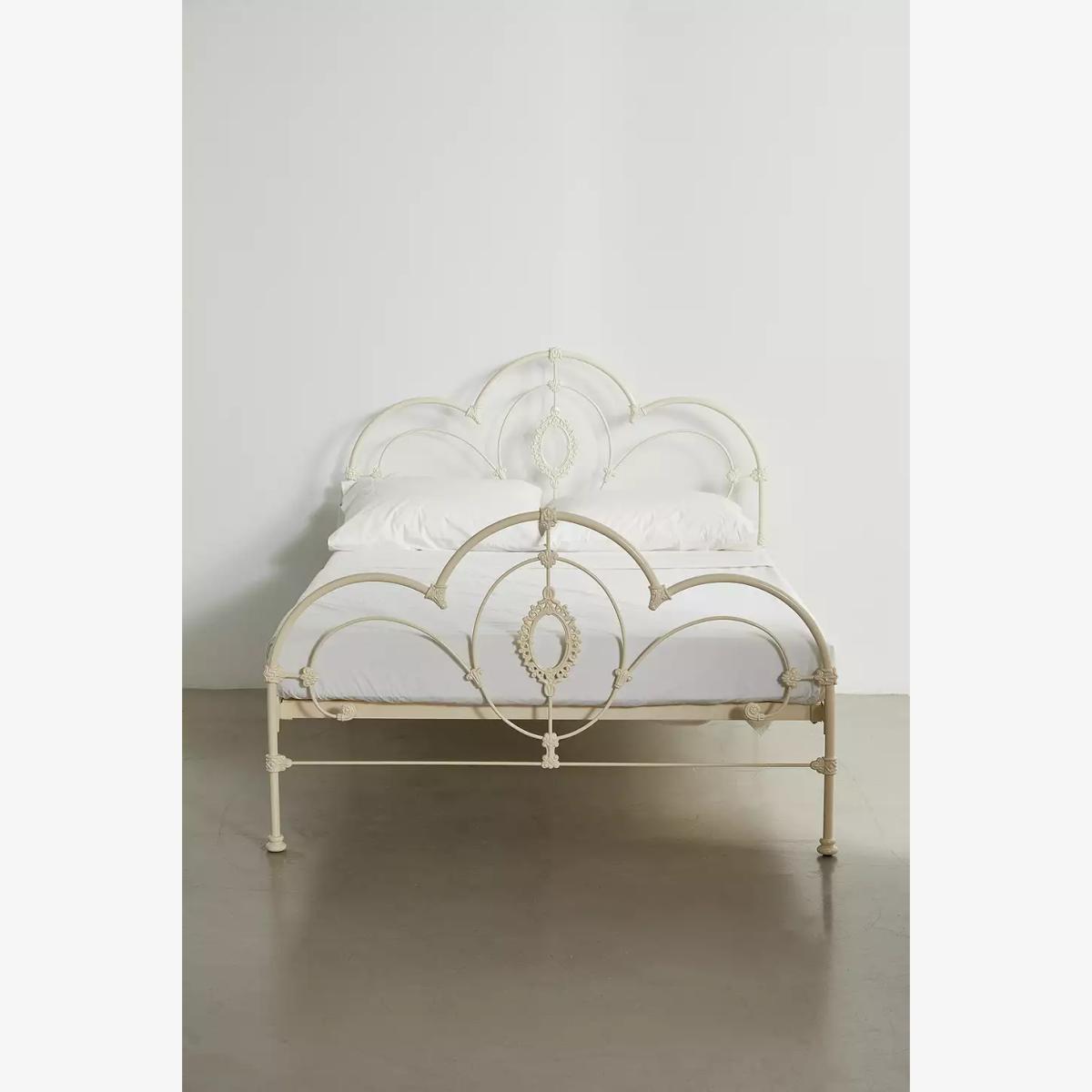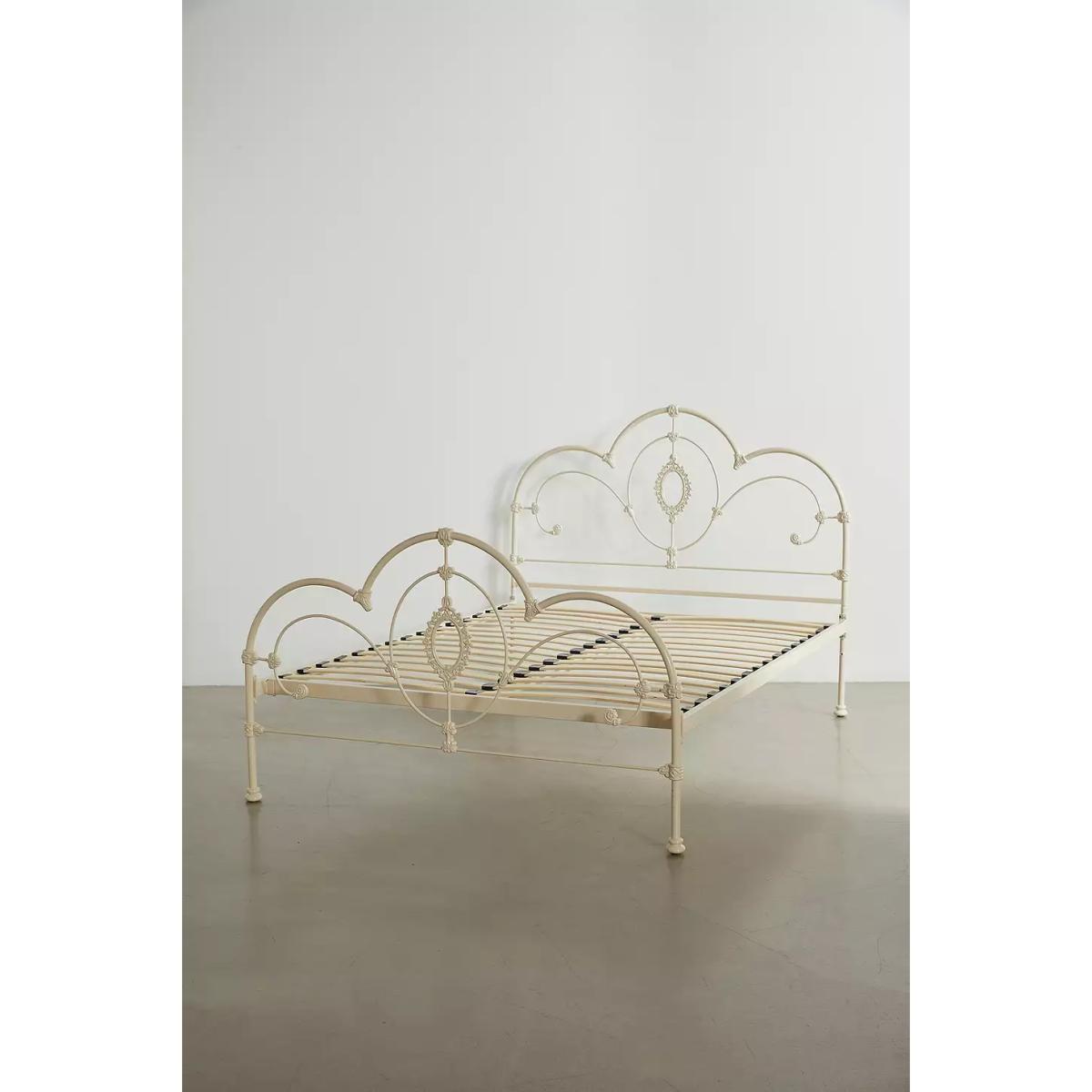 Add a vintage tone to your space with the Etta bed. Crafted from Iron Ft. curved, intricate scrollwork detailing that creates an elegant finish. Complete with a slatted base to support your mattress. *Online return only. This item cannot be returned instore. Please note furniture items currently cannot be shipped to Northern Ireland or The Republic of Ireland. Delivery of large furniture items may take 2-3 weeks and are therefore not eligible for Next Day Delivery.* **Content + Care** \- Assembly required - instructions and hardware are included \- Metal, Plywood slats \- Wipe clean **Size** \- Dimensions: L: 155.4cm x W: 207cm x H: 127cm \- Leg height/Clearance: 27.3cm \- Mattress space dimensions: L: 154.9cm x W: 203.2cm \- Headboard dimensions: L: 156.2cm x W: 127cm \- Weight: 91.5 lbs \- Shipping box one: 166cm x 103cm x 12cm \- Shipping box two: 212cm x 29cm x 7cm