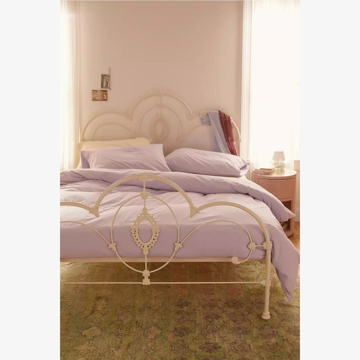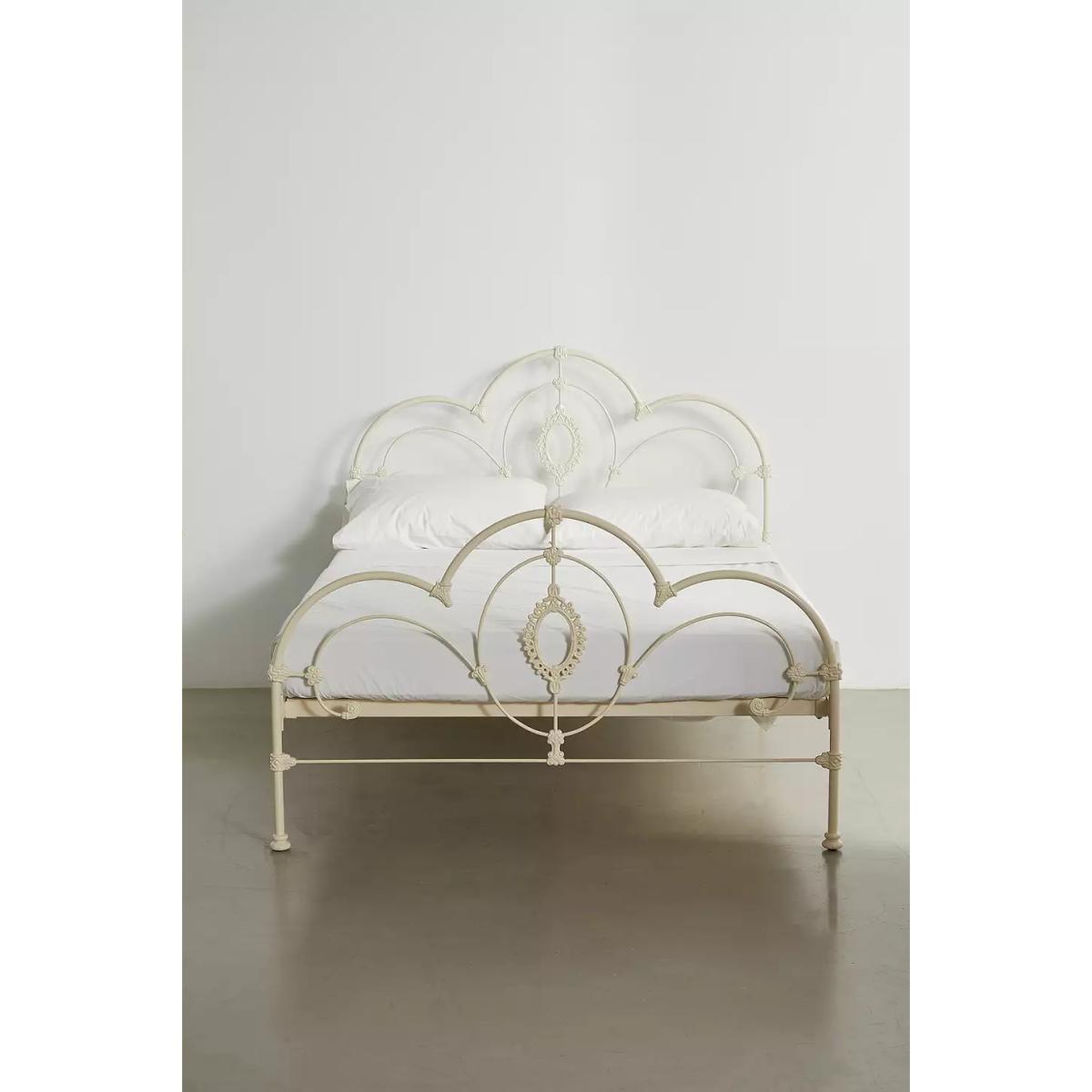 Add a vintage tone to your space with the Etta bed. Crafted from Iron Ft. curved, intricate scrollwork detailing that creates an elegant finish. Complete with a slatted base to support your mattress. *Online return only. This item cannot be returned instore. Please note furniture items currently cannot be shipped to Northern Ireland or The Republic of Ireland. Delivery of large furniture items may take 2-3 weeks and are therefore not eligible for Next Day Delivery.* **Content + Care** \- Assembly required - instructions and hardware are included \- Iron, Aluminum, Plywood slats \- Wipe clean **Size** \- Dimensions: L: 138cm x W: 194.1cm x H: 127cm \- Leg height/Clearance: 27.3cm \- Mattress space dimensions: L: 137.2cm x W: 190.5cm \- Headboard dimensions: L: 138.4cm x W: 127cm \- Weight: 84.5 lbs \- Shipping box one: 166cm X 103cm X 12cm \- Shipping box two: 212cm X 29cm X 7cm
