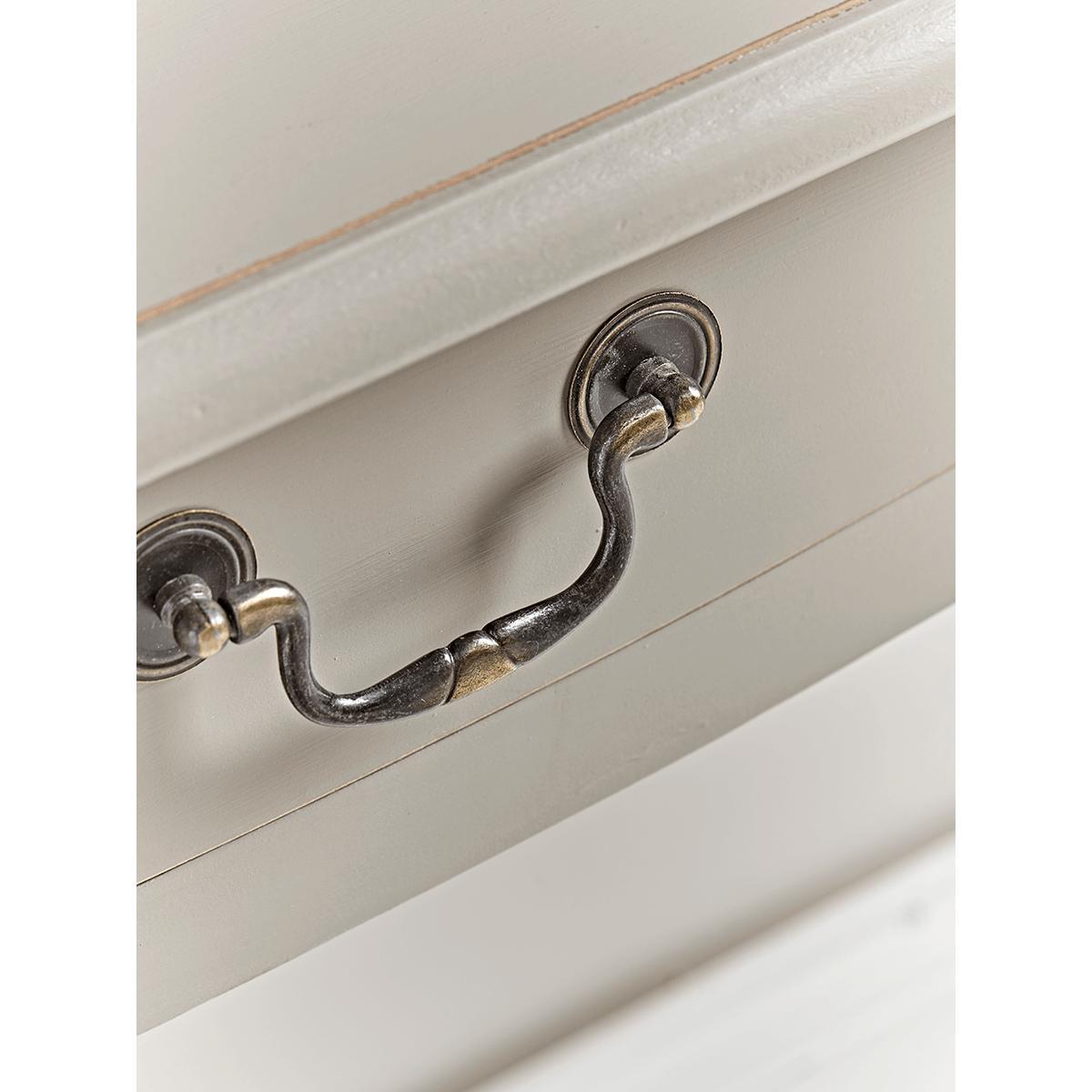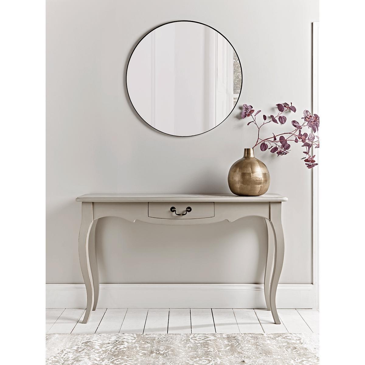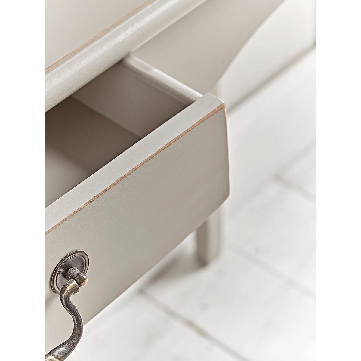 Made from pine with a washed paint effect finish our elegant console has a classic shaped frame, with traditional hardware. A beautiful tone makes this a timeless piece, that will easily sit in most interior looks. Each table has a small central drawer for those spare keys, change, general hallway stows.
