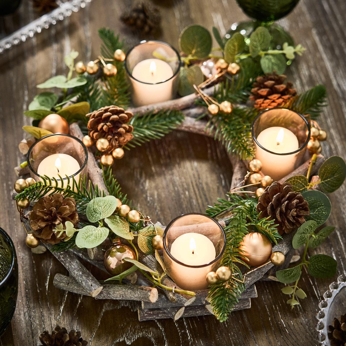 I love this eucalyptus candle holder wreath for its natural, understated elegance - it’s versatile enough to complement both contemporary and rustic interiors. It works particularly well in living rooms, dining areas, or entryways where you want to create an inviting atmosphere. For styling tips, try pairing it with other greenery or natural textures like wood or linen for a layered look. It’s also perfect as a festive centrepiece during the holidays or for everyday candlelit ambiance. When arranging, ensure the candles are secure and consider placing it on a neutral or contrasting surface to make the greenery pop. Overall, it’s a great addition to add subtle greenery and warmth to any space.
