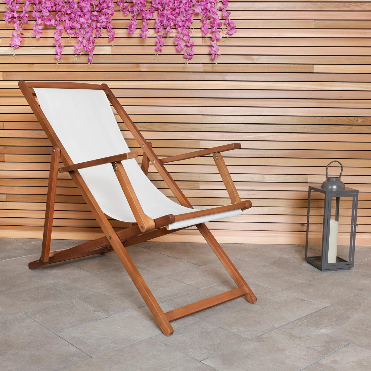 Eucalyptus Cream Wooden Deck Chair Cream and Brown