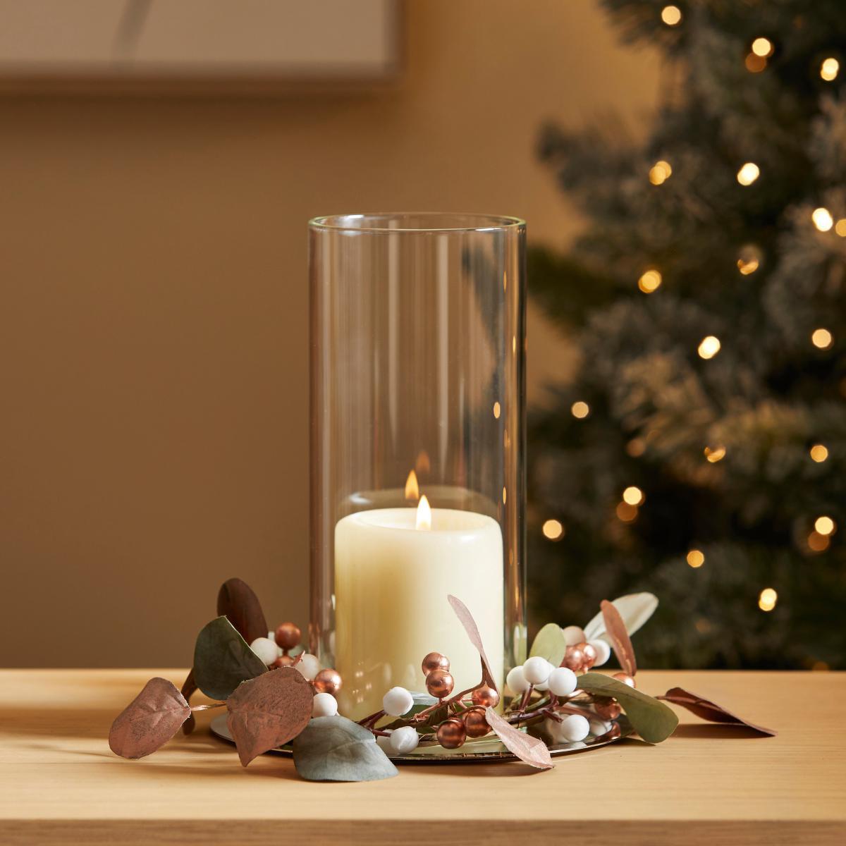 I love this green glass pillar holder for its sleek, contemporary look that easily elevates both modern and traditional interiors. Its transparent glass adds a touch of elegance while allowing the candle’s glow to shine through, creating a warm ambiance. It works well in living rooms, dining tables, or even bedrooms, especially when styled with natural touches like dried flowers, greenery, or seasonal decorations. For practical styling, try combining it with other candle holders of varying heights or colours to create an interesting centrepiece or a cosy vignette. Its versatile design makes it a great piece to adapt across different interiors, from minimalist to eclectic schemes.