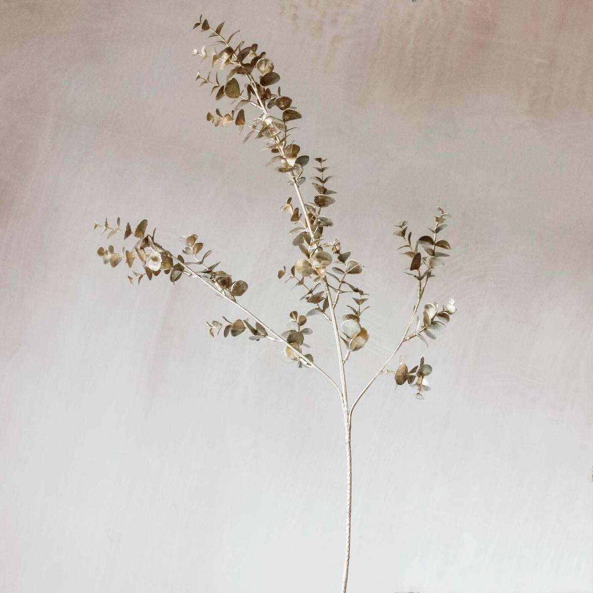 I love the eucalyptus glitter stem because of its subtle shimmer and versatility. It works particularly well in contemporary and minimal interiors, adding a touch of elegance without overpowering the space. These stems can be used as standalone statement pieces in vases or grouped together for a fuller arrangement. Practical styling tips include placing them in clear glass vases for a sleek look, or mixing with other green or neutral tones for added dimension. They’re also ideal for use in settings where low maintenance is key, as they retain their fresh appearance year-round without any need for watering or sunlight.