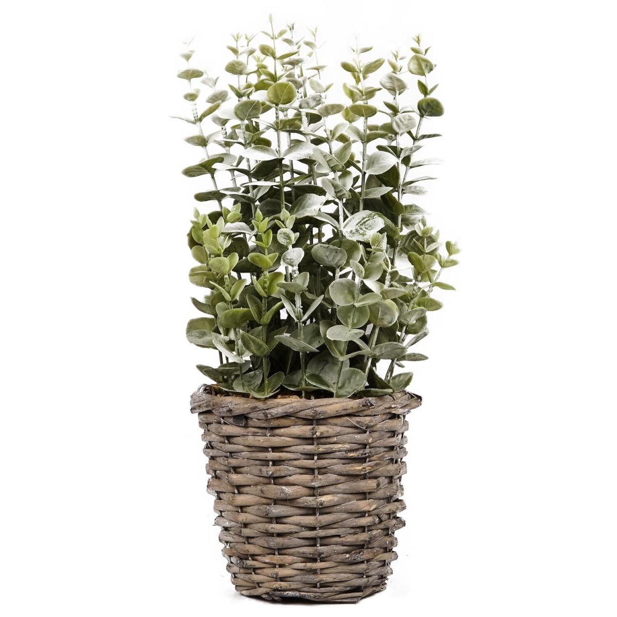 The Faux Eucalyptus in Grey Wicker Pot is a realistic-looking plant that's a versatile choice for any home decor style. Made with a rustic design that's easy to coordinate, this wicker pot is finished with tall faux leaves that have created for a realistic look. With no maintenance required, this is a great choice for the living room accent table, bedroom shelf, or brightening your hallways.