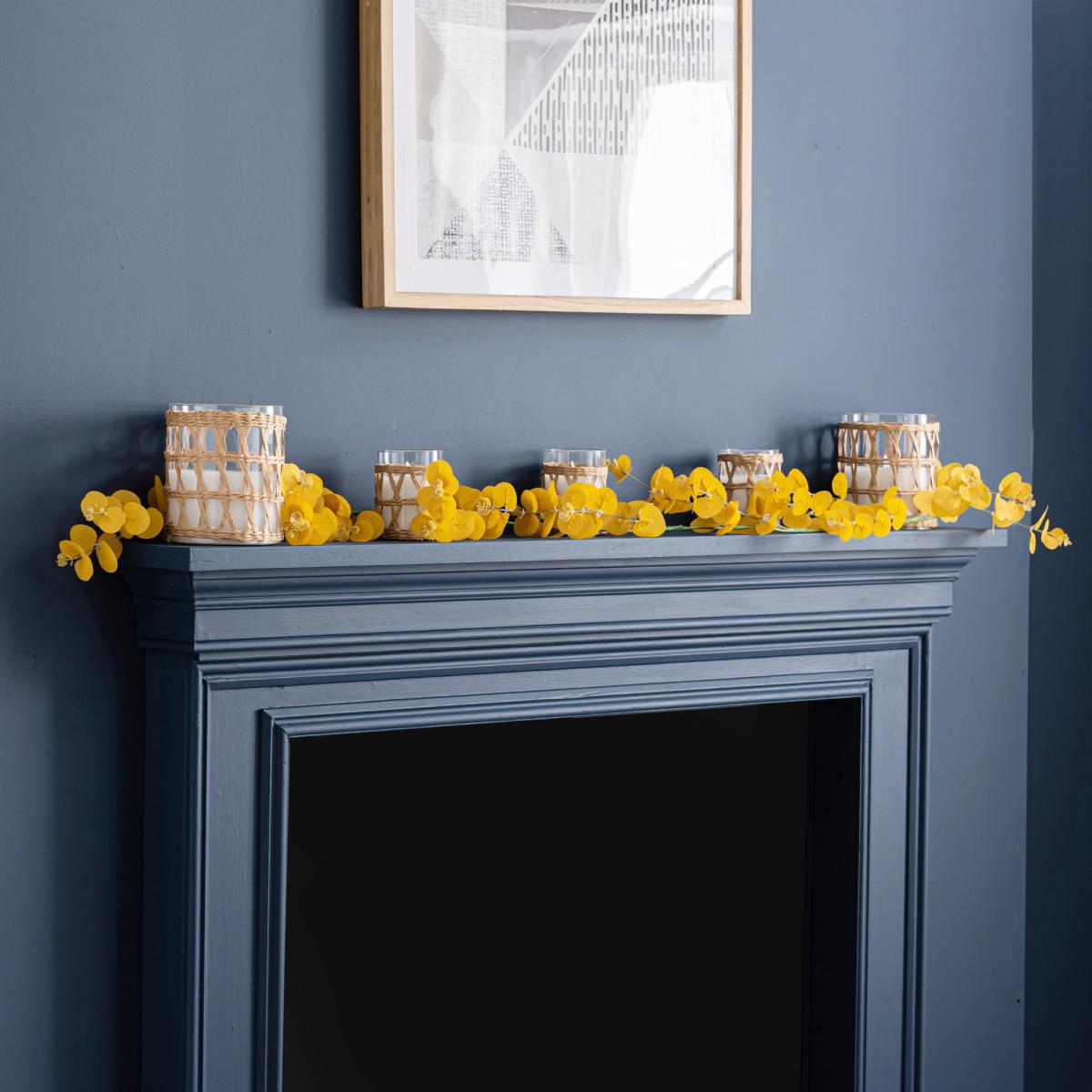 I love the Eucalyptus Ochre Garland for its warm, earthy tone and versatile appeal. It works particularly well in contemporary or rustic interiors, adding a burst of colour without feeling overwhelming. Practical styling tips include draping it along mantels, shelving, or use as a centrepiece on a dining table for a pop of colour. Its artificial nature makes it low-maintenance, ideal for spaces where real flowers might not last long or be practical. Pairing it with neutral surrounds or natural textures like wood or linen enhances its organic feel, creating an inviting yet polished look.