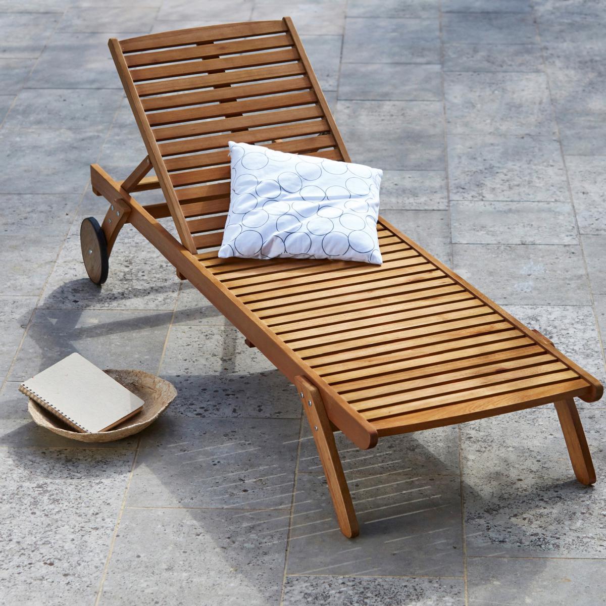 Bang on trend, this sun lounger made from exotic wood adds a nice fresh touch.