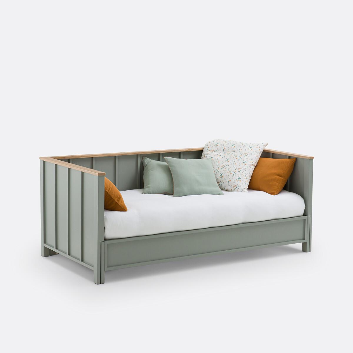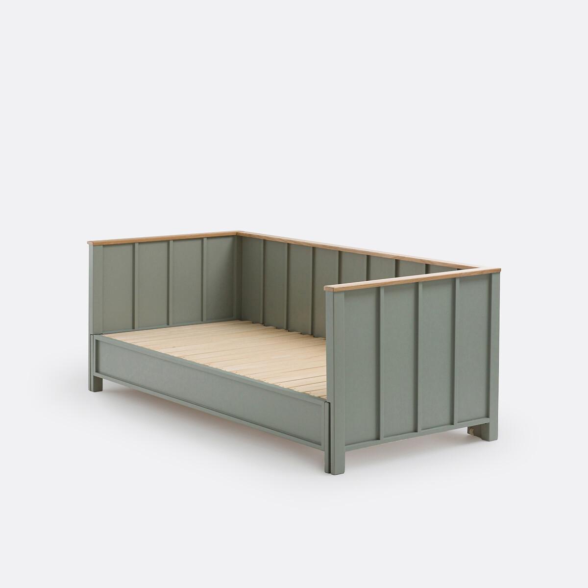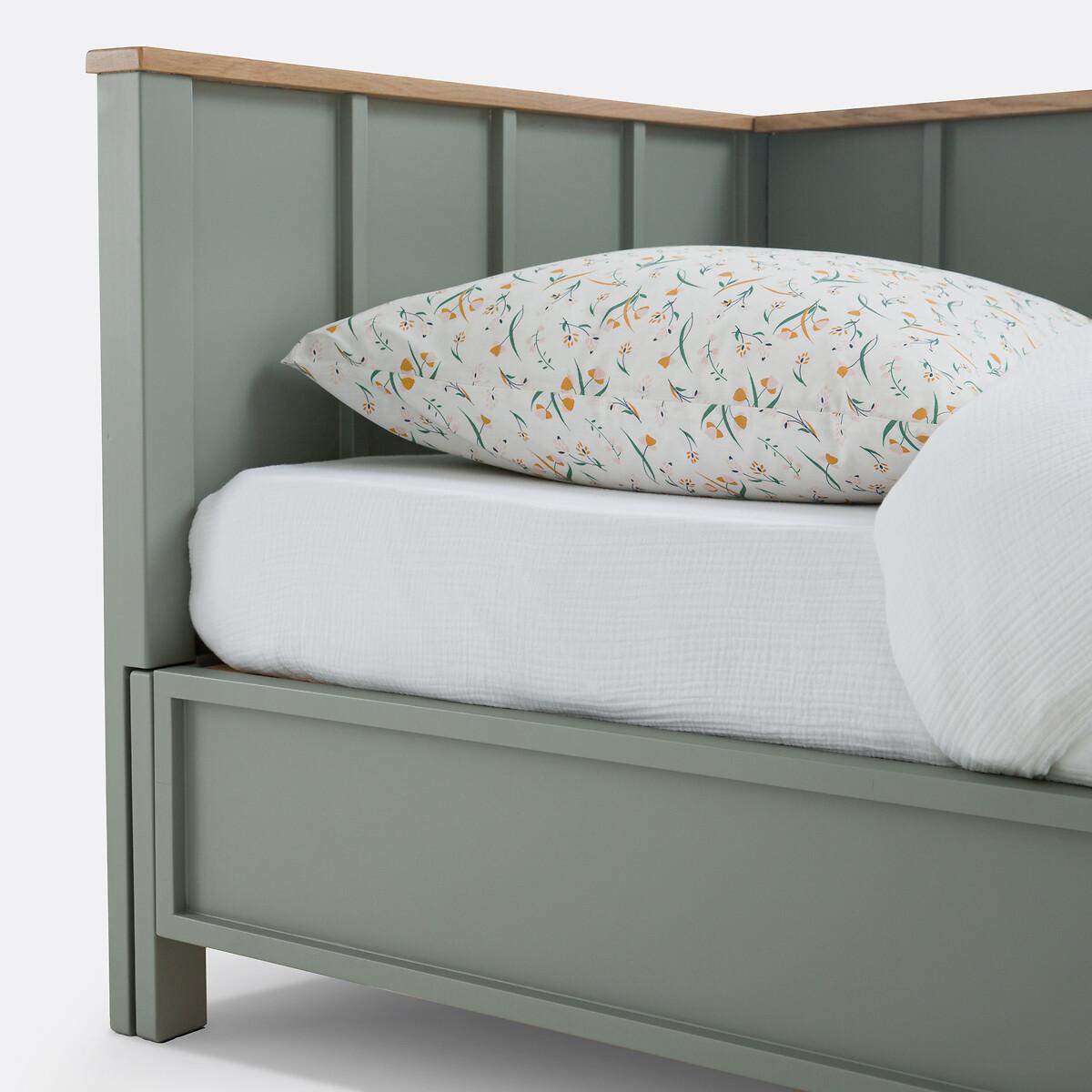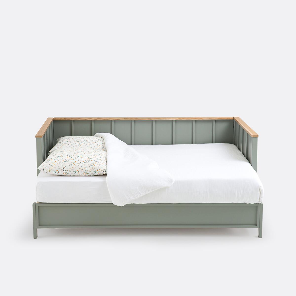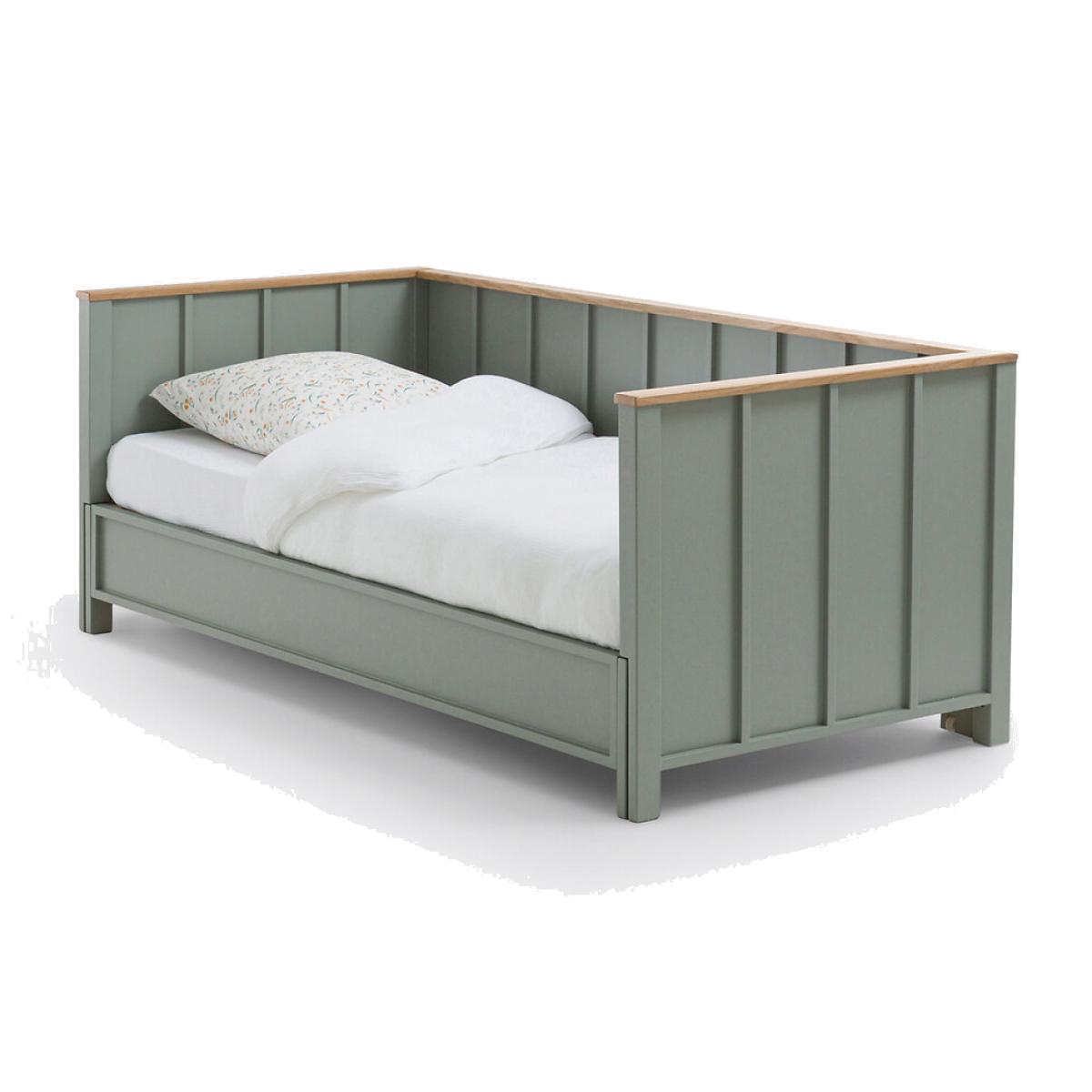 The Eugène trundle bed is part of our Les Ingénieux collection. Creations full of ideas to make life simpler and everyday life more beautiful, imagined by our designers in France.. This cosy bed gives you the option of two beds in one. Why you'll love it • Surprise guest for the night? The trundle bed with bed base pulls out in seconds. • For its soft, warm colour. Product Details • Lacquered MDF, acrylic finish (water-based paint without solvent) and oak veneered MDF • Solid pine drawer handles • Supplied with multi-ply slatted base for the main bed • Trundle bed on castors, with pine bed base • People required for assembly:2. Quality Info • This product complies with current safety requirementsDimensions. Bed • Width: 101cm • Height: 80cm • Length: 212cm • Weight: 82kg. Underbed drawer • Width: 90cm • Height: 31cm • Length: 205cm Cot size • Bed : 90 x 200cm • Trundle bed: 90 x 200cm • This product requires assembly. Dimensions and weight of parcel3 parcels • L113 x H19 x D87cm, 37.2kg • L217 x H13 x D69cm, 41kg • L103 x H15 x D32cm, 16.2kg