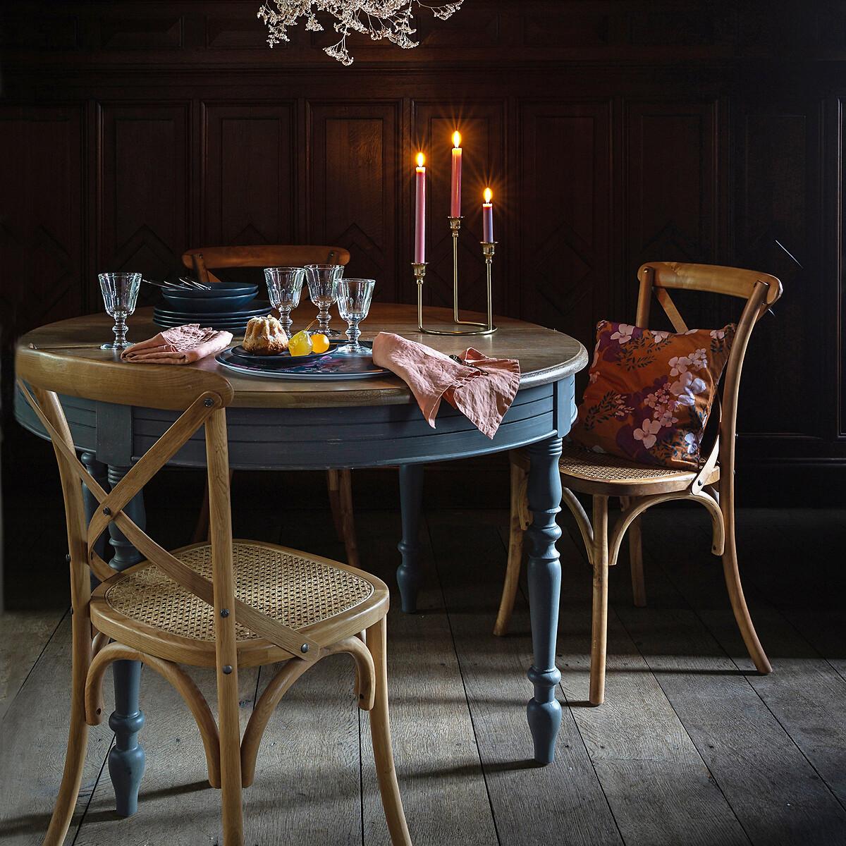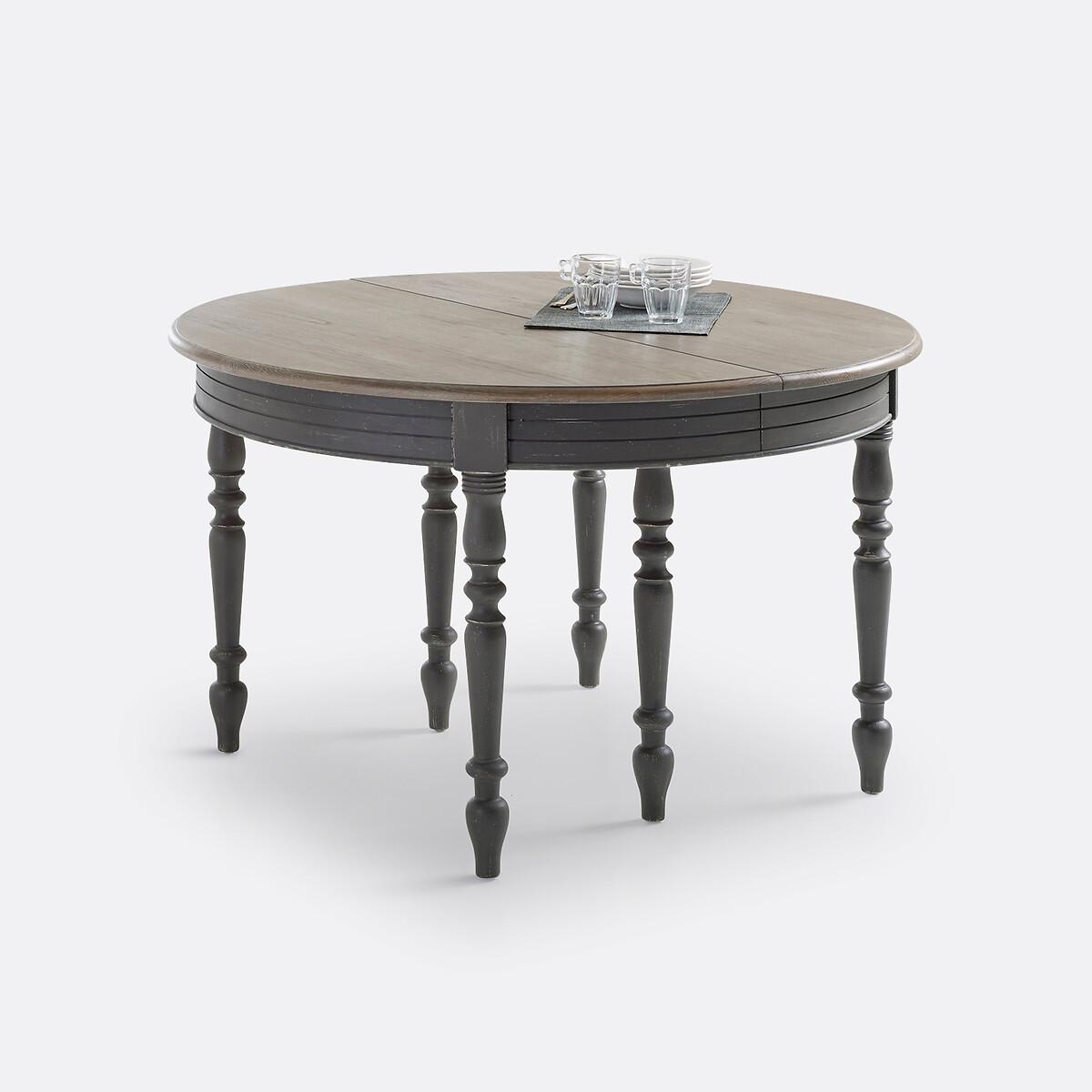 Eulali extendable, aged-effect table for 4 to 12 persons : French elegance is expressed in this revamped classic-style table in grey anthracite or white aged finish. Product Details • Turned legs • Seats 4 to 12 persons • Legs in solid pine and hand-painted, aged effect MDF with an acrylic varnish finish • Tabletop in limewashed oak veneer MDF • Discover other style from the Eulali collection online. Dimensions • Width: 120cm • Length: 125/170/215/260cm • Length of extensions : 45cm • Height: 76cm • Space between the central leg and the ends: L95/104cm • Space between the legs at the end of the table: 68cm. Home Delivery. Your Eulali table for 4 to 12 persons comes ready for self-assembly. It will be delivered to your home!Note! Please check that access points (doorways, stairways, lifts) are wide enough to accommodate your delivery. • WOOD FROM MORE SUSTAINABLY MANAGED FORESTS AND CONTROLLED SOURCES. FSC® Mix wood contains at least 70% FSC® certified and/or recycled wood, the remainder being FSC® controlled wood. Dimensions and weight of parcel:2 parcels • L132 x H21 x D127cm - 44kg • L135 x H32 x D127cm - 37kg