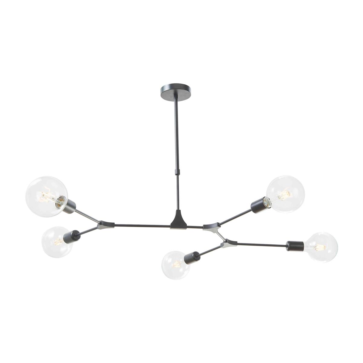 This large ceiling light’s height-adjustable telescopic fitting ensures that it works equally well in rooms with high or low ceilings. And it’s very stylish too. Why you'll love it Versatile and eye-catching semi-flush 5-light ceiling light. Bold modern style. Looks fabulous with 5 large globe light bulbs. On-trend satin black finish. Telescopic fitting is height-adjustable on installation. Semi-flush design is ideal for lower ceilings. This semi-flush ceiling light is part of the Furniture Village lighting collection. What you need to know Metal. Requires 5 x E27 ES Globe max. 60 W bulbs (not included). Professional installation recommended. Dimensions Height: 36 cm (15 in). Depth: 66 cm (26 in). Width: 95 cm (38 in).