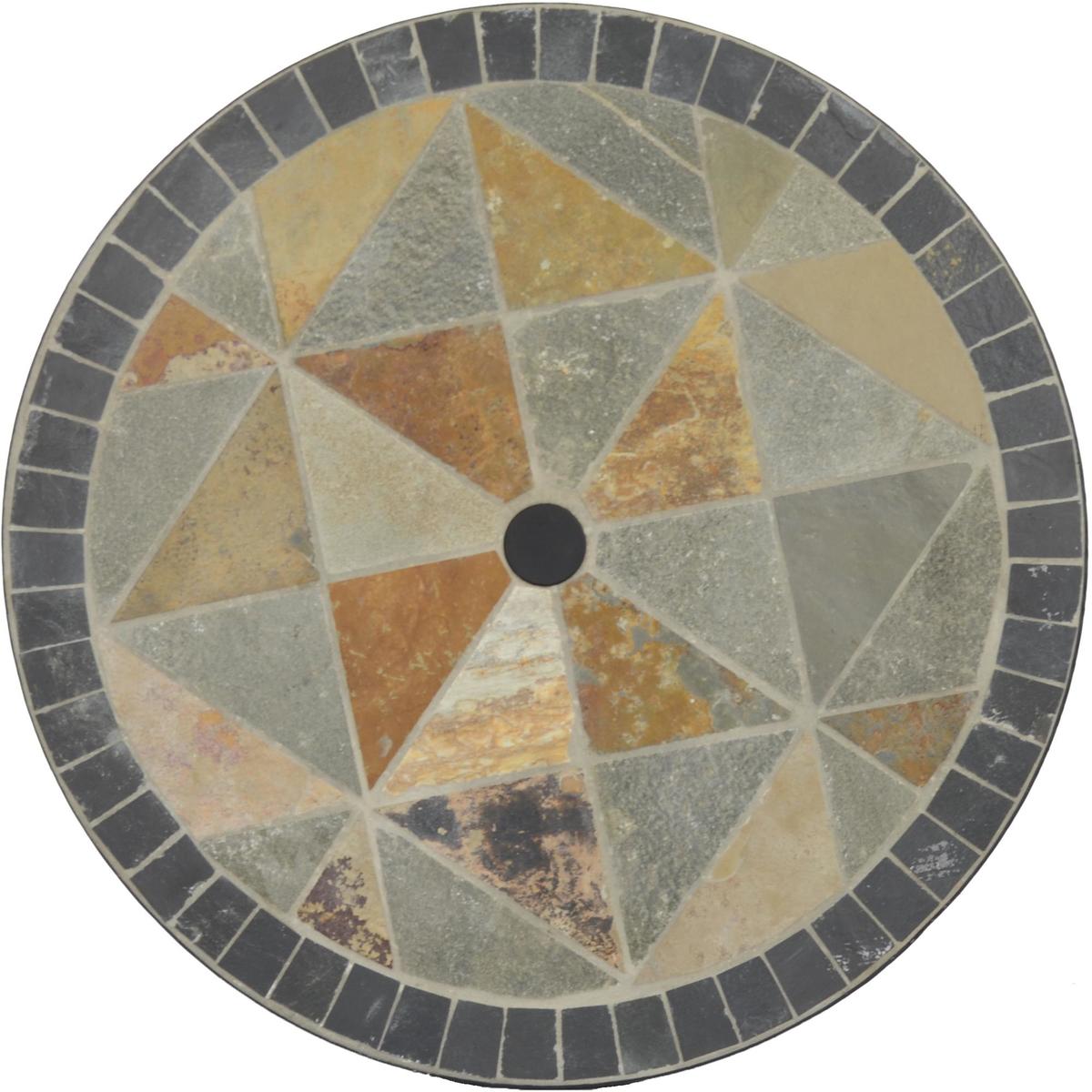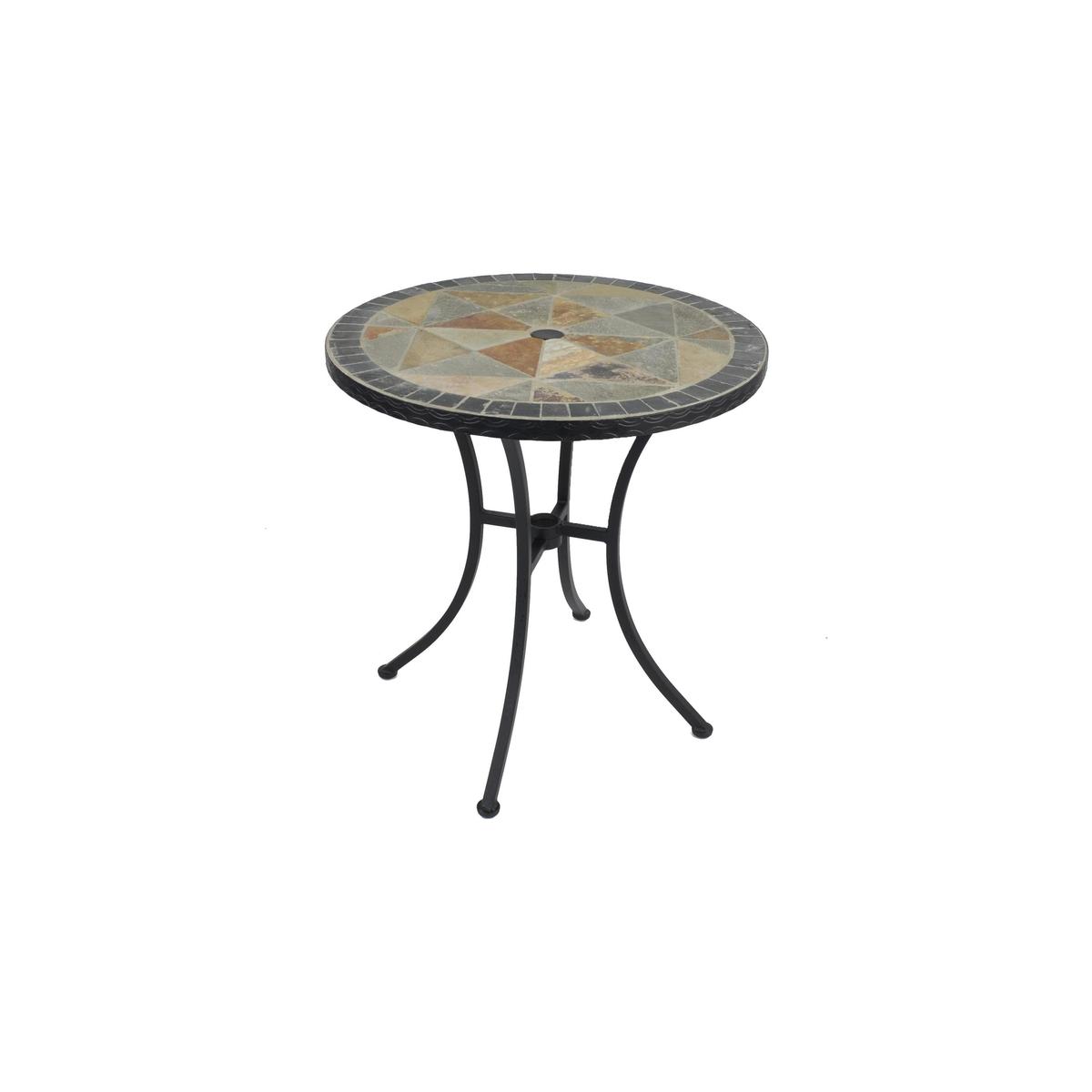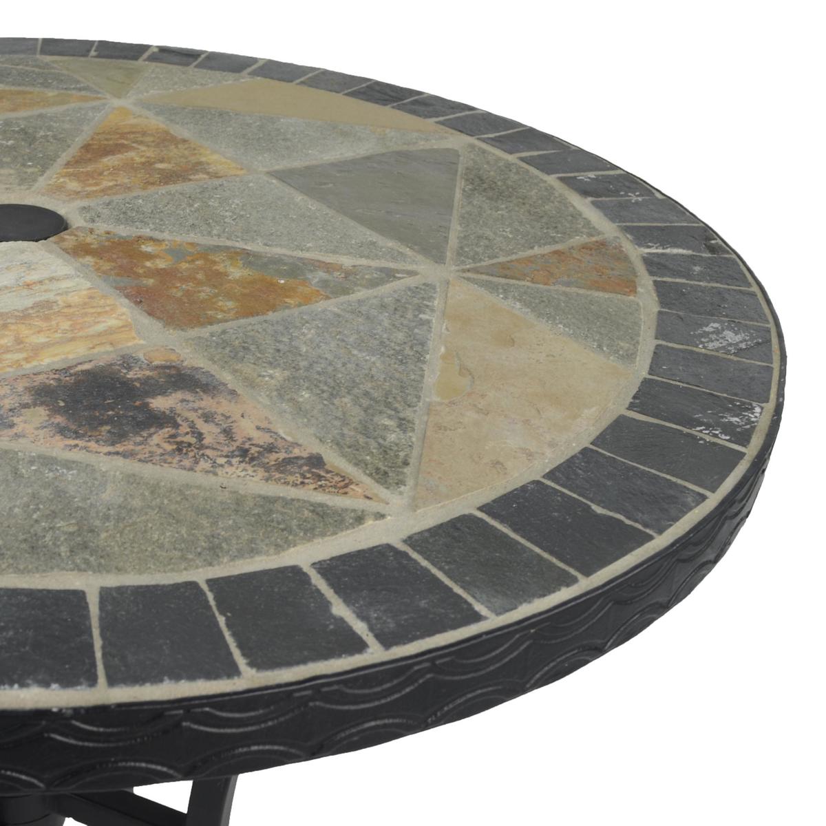 The Europa Leisure Tobarra Table is a beautiful 60cm round bistro table that will add a rustic charm to any garden setting. It is made with hand cut riven stone and slate mosaic, and the inclusion of a moulder embossed leaf design adds to the look. The table is made with steel legs which are powder coated black. Please note, unfortunately we cannot deliver this item to the Channel Islands.