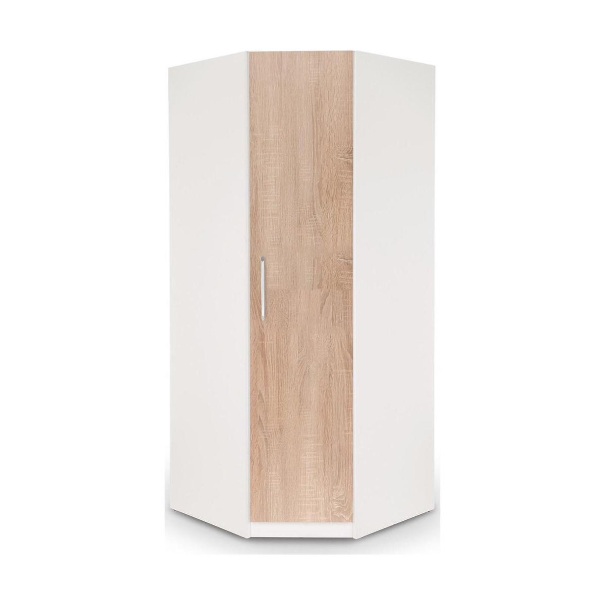With oak finished front panels and white sides, the Euston Range blends contemporary and traditional elements for a well rounded stylish look. With metal effect plastic handles and ample storage space, this wardrobe will be a practical addition to your home. The Euston Corner Wardrobe boasts a contemporary design to offer a space saving alternative to the traditional wardrobe while maximising storage space and maintaining an air of sophistication. Please note, unfortunately we cannot deliver this item to the Channel Islands.