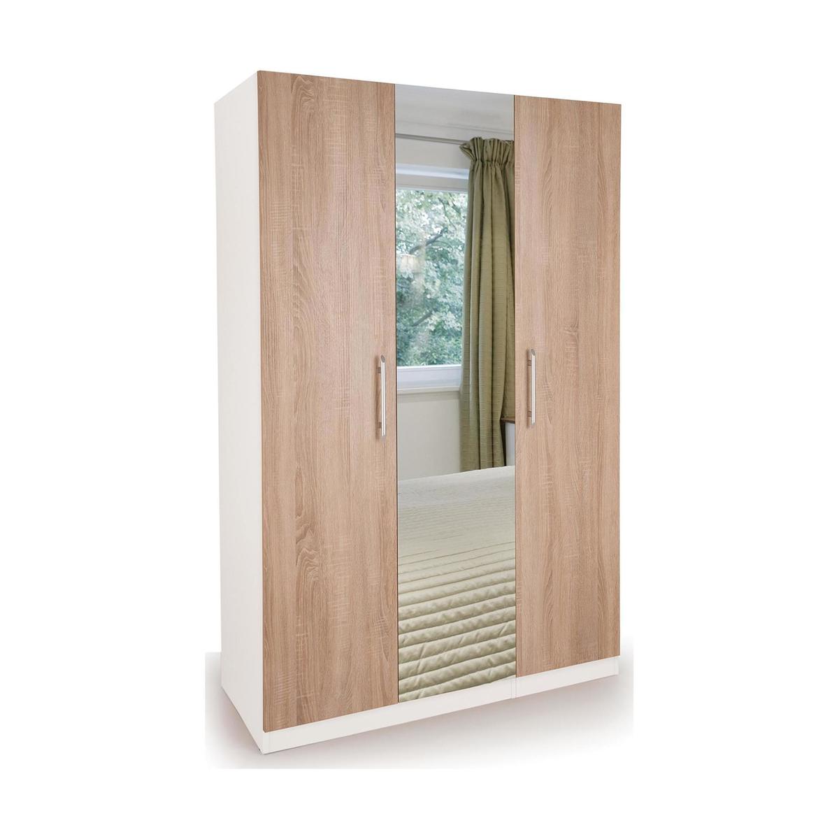 Euston Mirrored Triple Wardrobe White/Natural