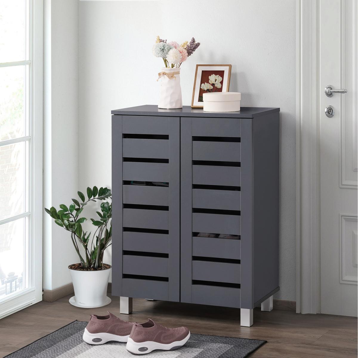 Euston Modern 2 Door Shoe Storage Cabinet - Dark Grey