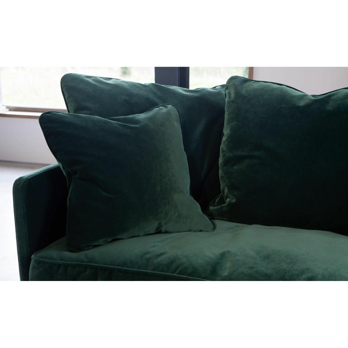 Influenced by the refined opulence of the Art Deco era, our Eva collection has sleek curves which offer a warm embrace and oversized feather filled scatter cushions to ensure maximum comfort. The sumptuous foam seats are finished with elegant piping, and it sits upon slender wooden legs. Available made to order in a wide range of fabric and colour options so you can find the perfect one to match your home. Pictured: Three Seater Sofa in Deep Green Classic Velvet.