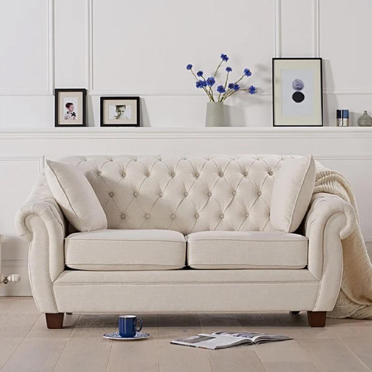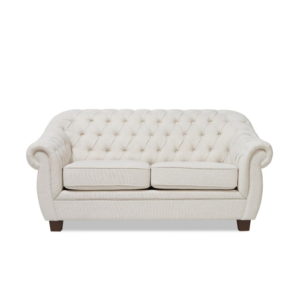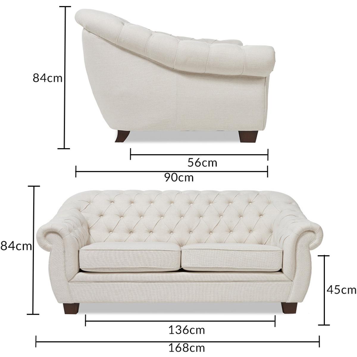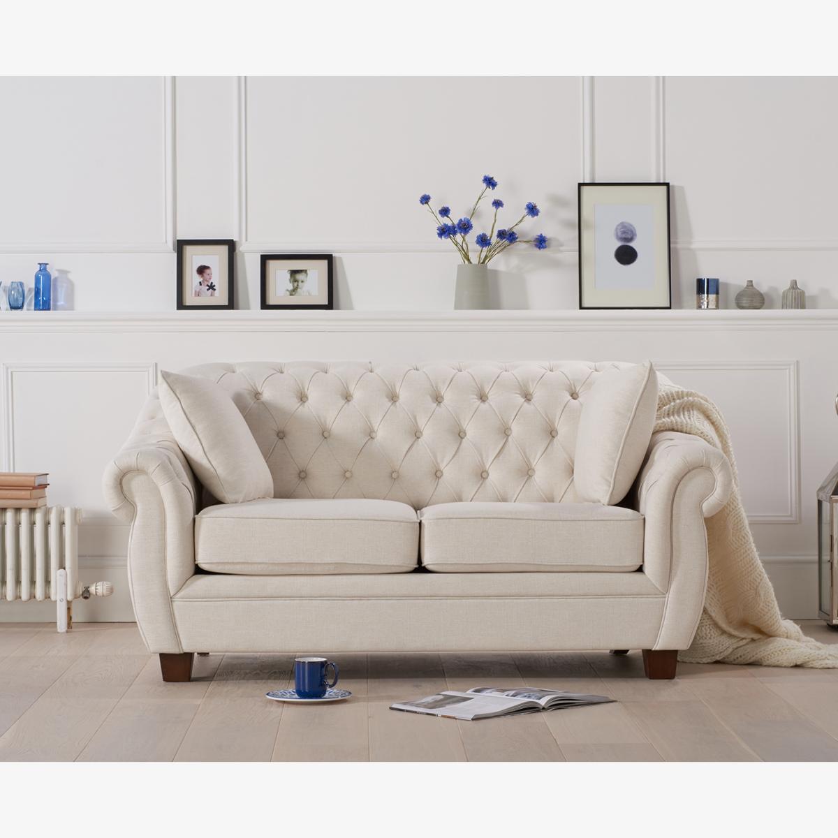 Eva Chesterfield Ivory Linen Fabric Two-Seater Sofa
