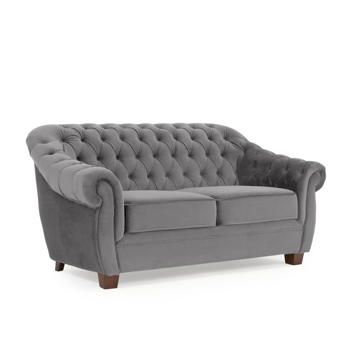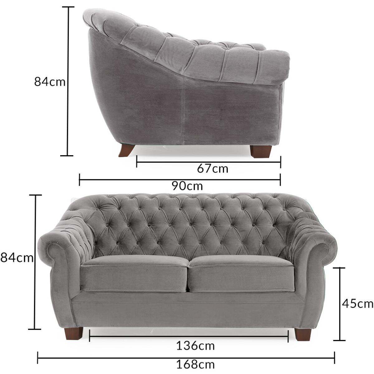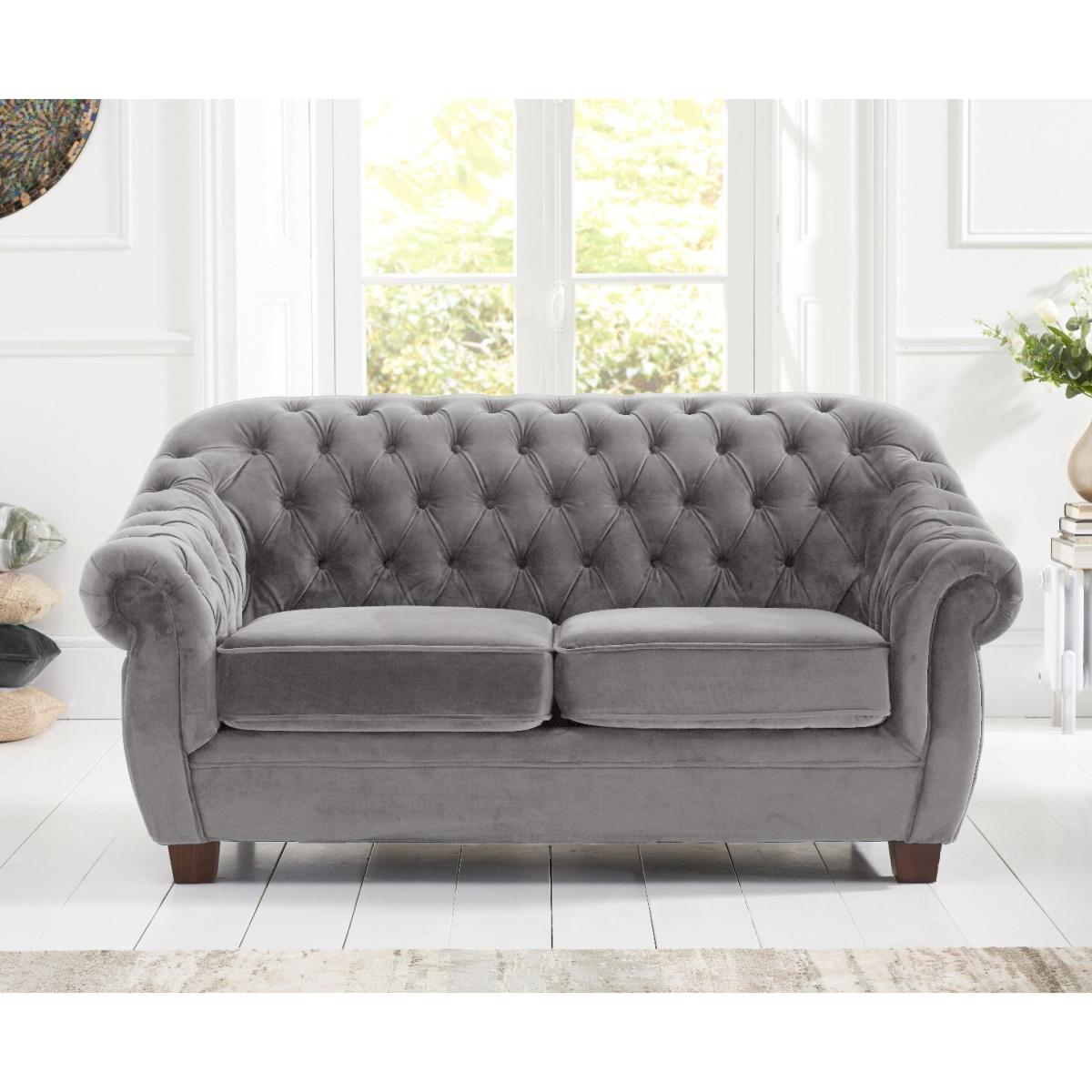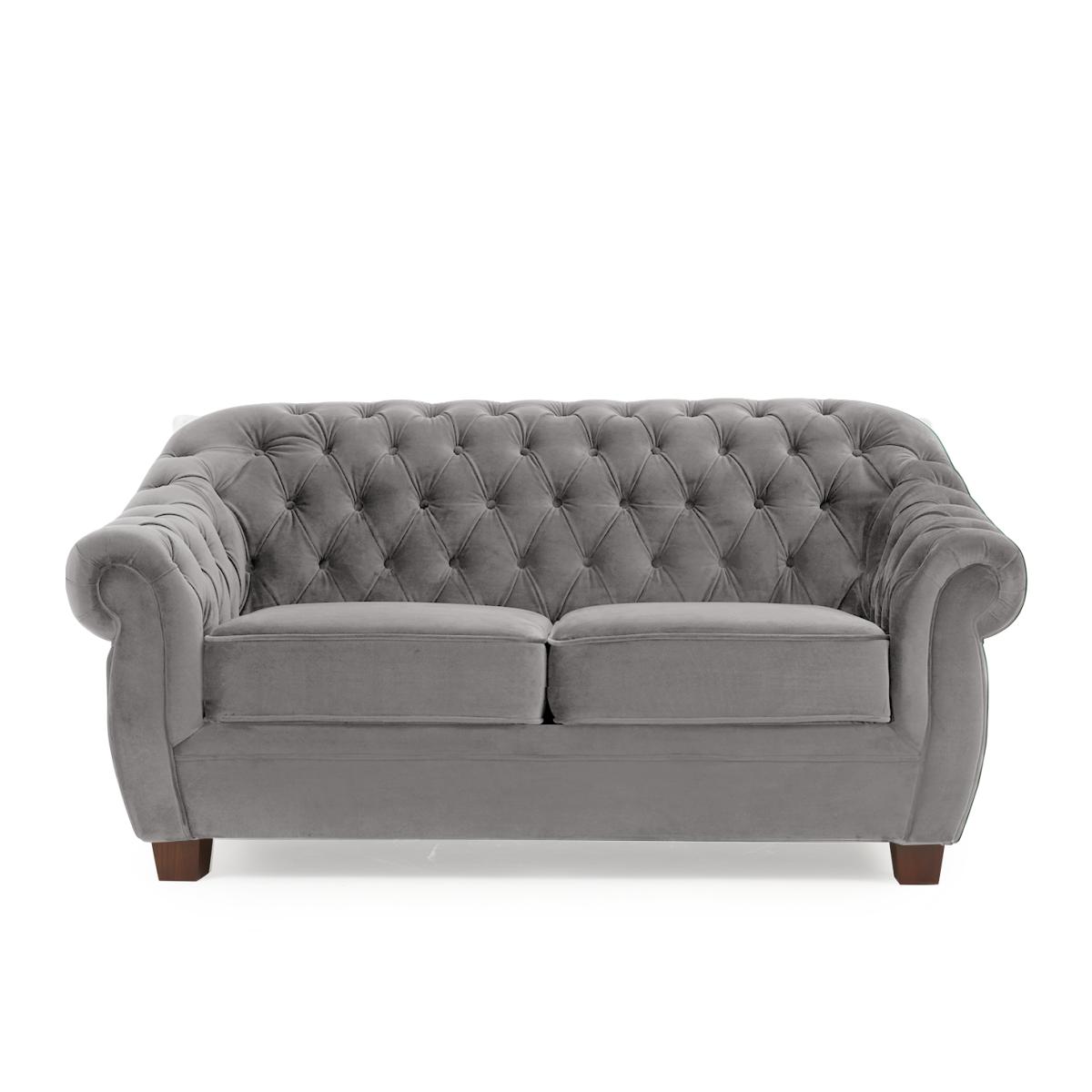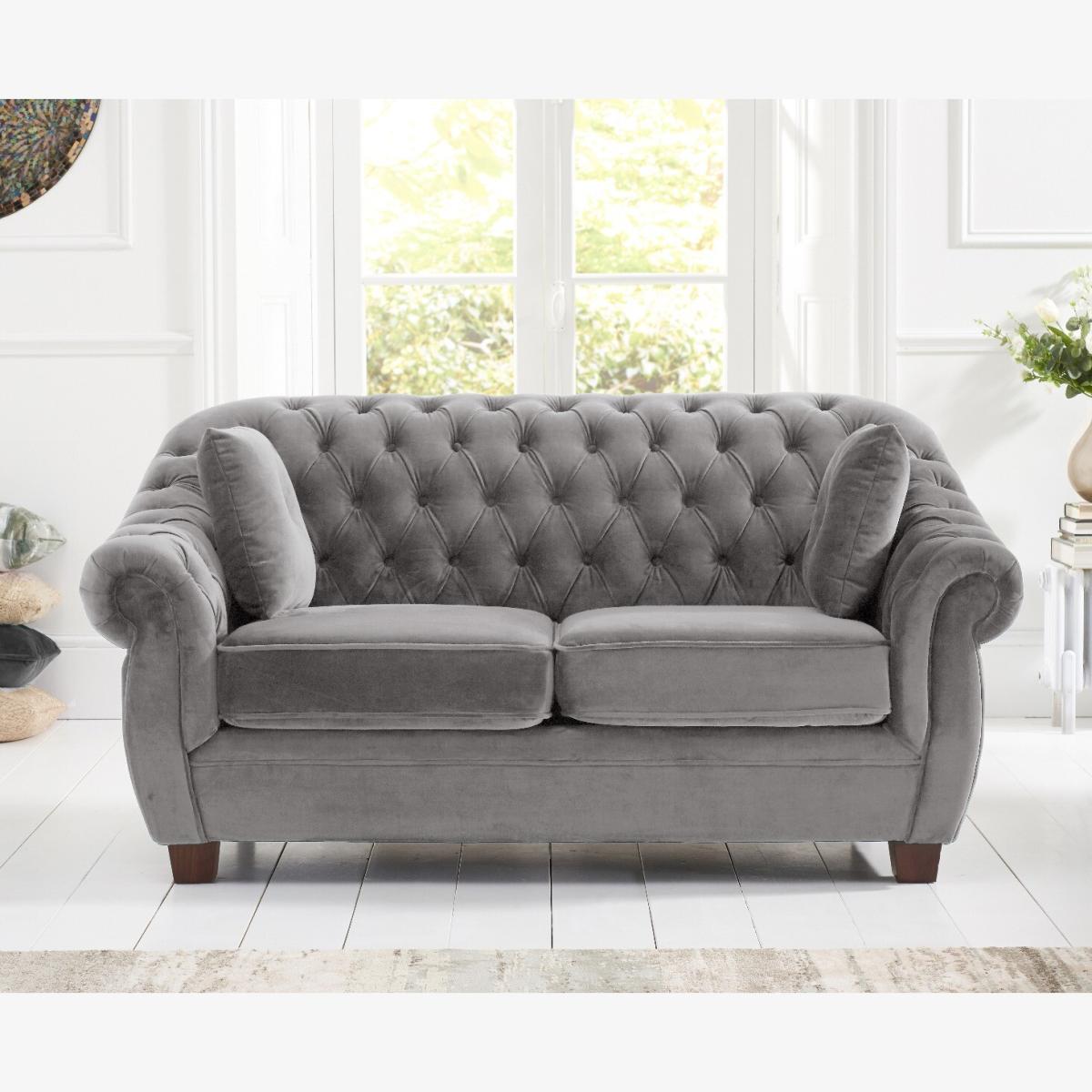 Eva Chesterfield Light Grey Velvet 2 Seater Sofa