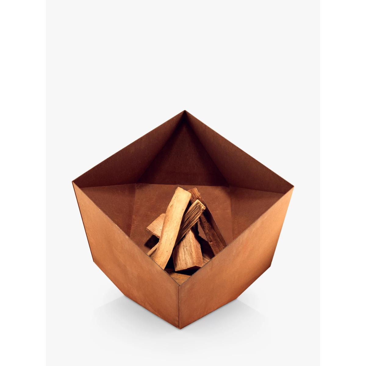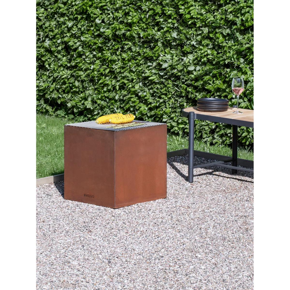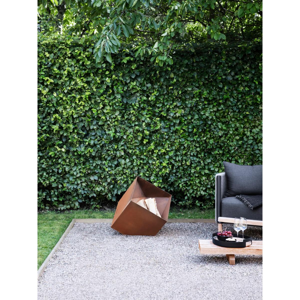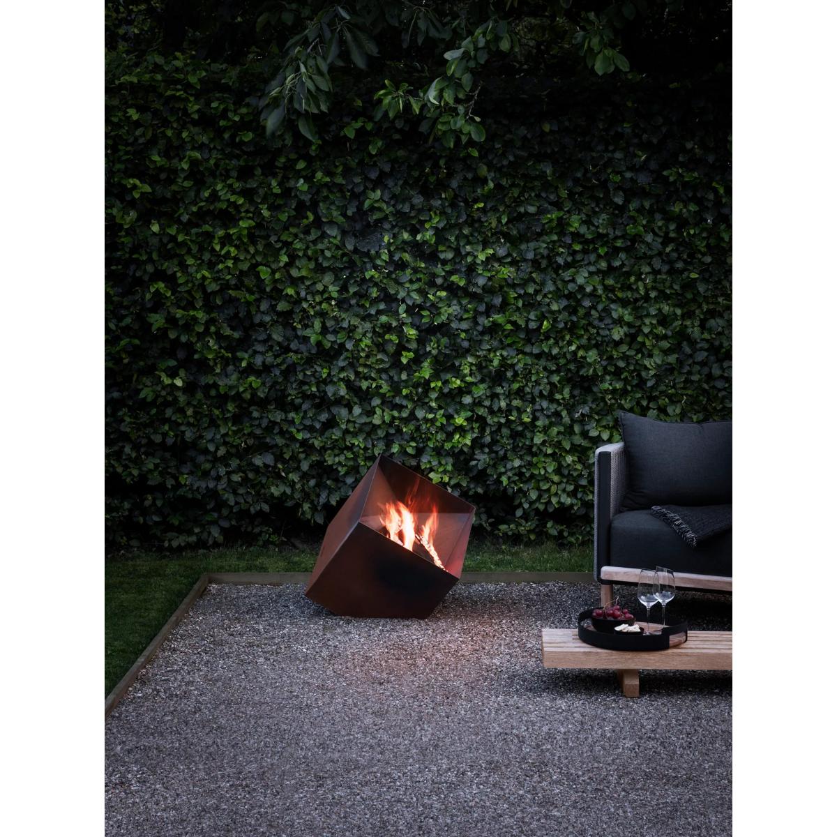 A sculptural and rustic firepit in corten steel for your garden or patio. The Eva Solo Fire Cube can be positioned in two ways: upright or at an angle. This gives it a unique look, but also practical wind-shielding when needed. The all-weather Fire Cube is designed for year-round outdoor use. Over time, natural weathering will give the fireplace a distinctive patina that will only add to its appeal. While the rust does not transfer like other rust, small stains or run-off may occur.