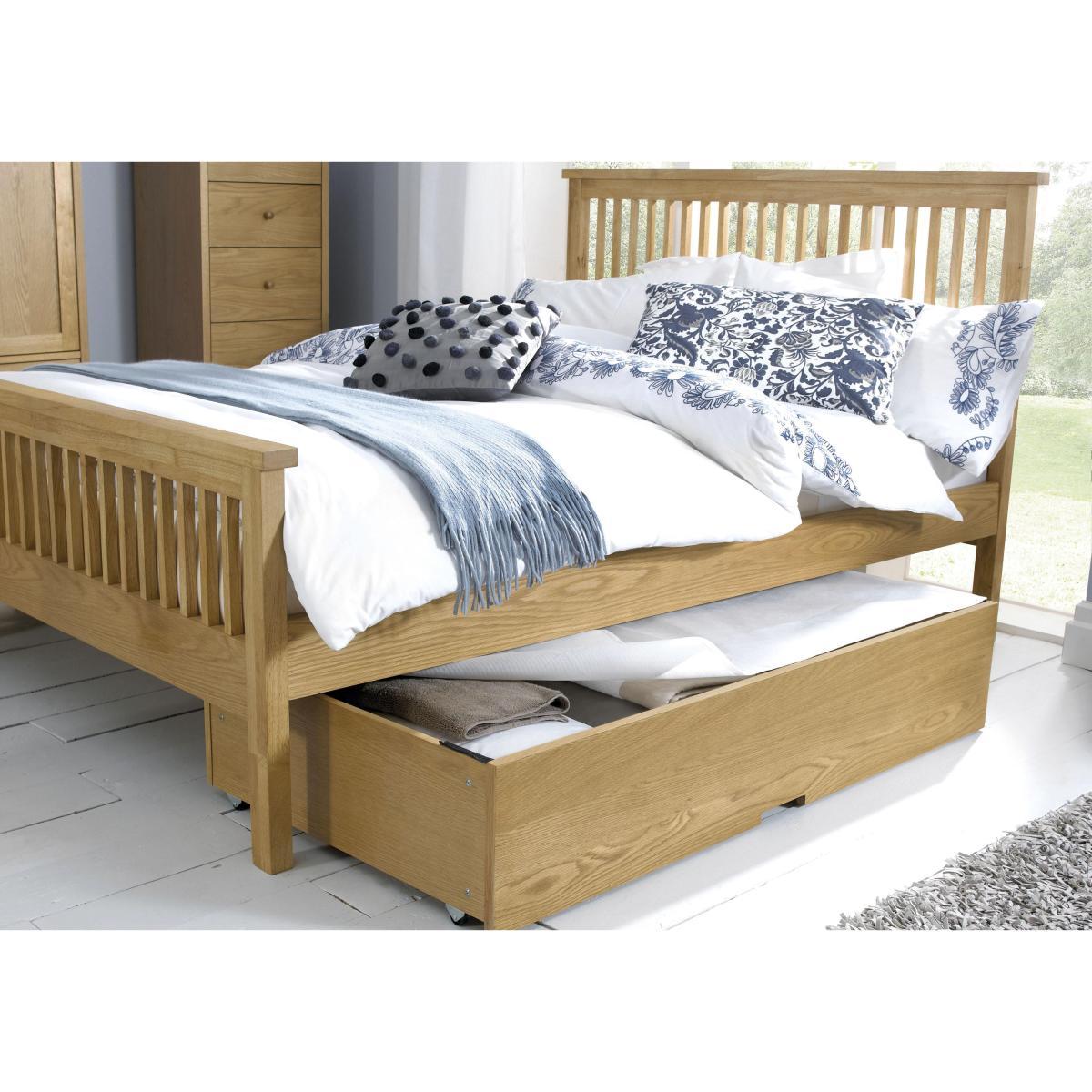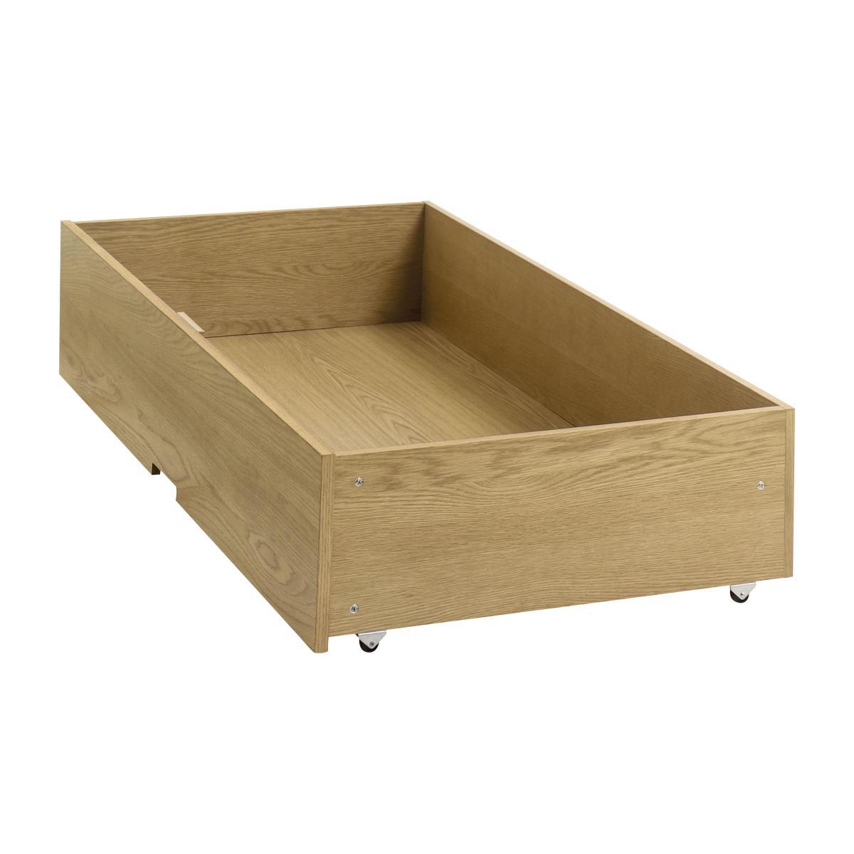 The Eva collection of compact, beautifully crafted bedroom furniture is fantastic value for money. Each piece is made from solid beech with American white oak veneers protected by a strong lacquer finish. We love the elegantly simple design with clean lines and conical wooden handles. Short of space? There’s even optional under bed storage for some sizes of bed frames. Available in alternative colours and finishes. Practical under bed drawer at a fantastic value price. Crafted from solid beech, beech effect and American white oak veneers. Protected with a durable lacquer finish. Perfect to fit under the larger Eva bed frames*. Useful storage for bedding, spare clothes and more. Fitted with wheels, so it is easy to move. Protective dust cover. Also available in a white painted beech finish. *Not suitable for use under the Eva small double bed frame.