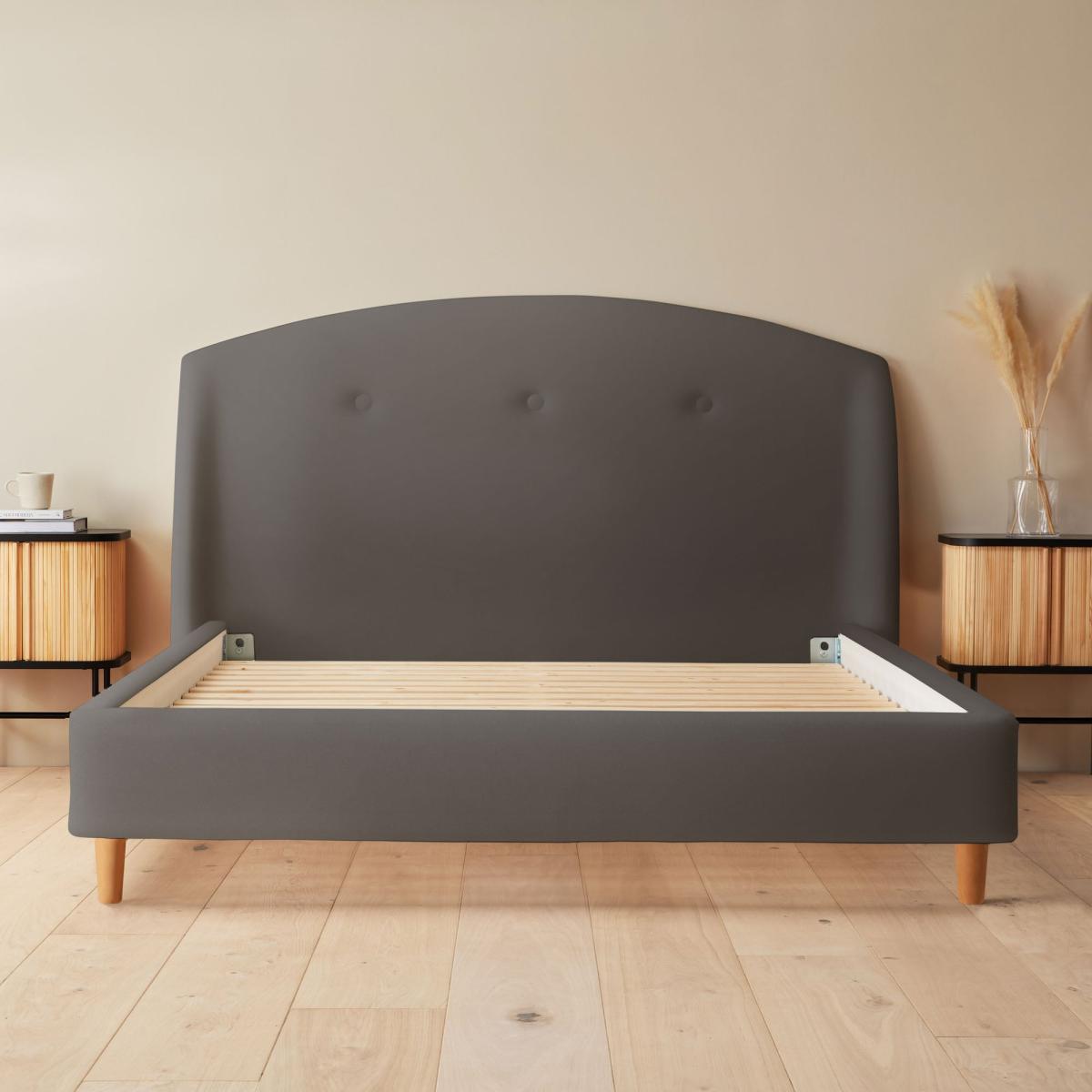 I’m a fan of this velvet grey bed for its clean lines and subtle arch, which give a modern nod to classic mid-century style without overwhelming a room. The soft charcoal pile works well in Scandi, contemporary or even minimalist schemes, and it’s an ideal backdrop for layered linens in muted tones or a pop of ochre and forest green. To style, try low-profile bedside tables in light wood or metal, then soften the look with textured cushions and a woollen throw. A natural-fibre rug under the frame will anchor the bed and protect your floors, while a simple bedside lamp or sculptural vase keeps the overall feel uncluttered yet inviting.