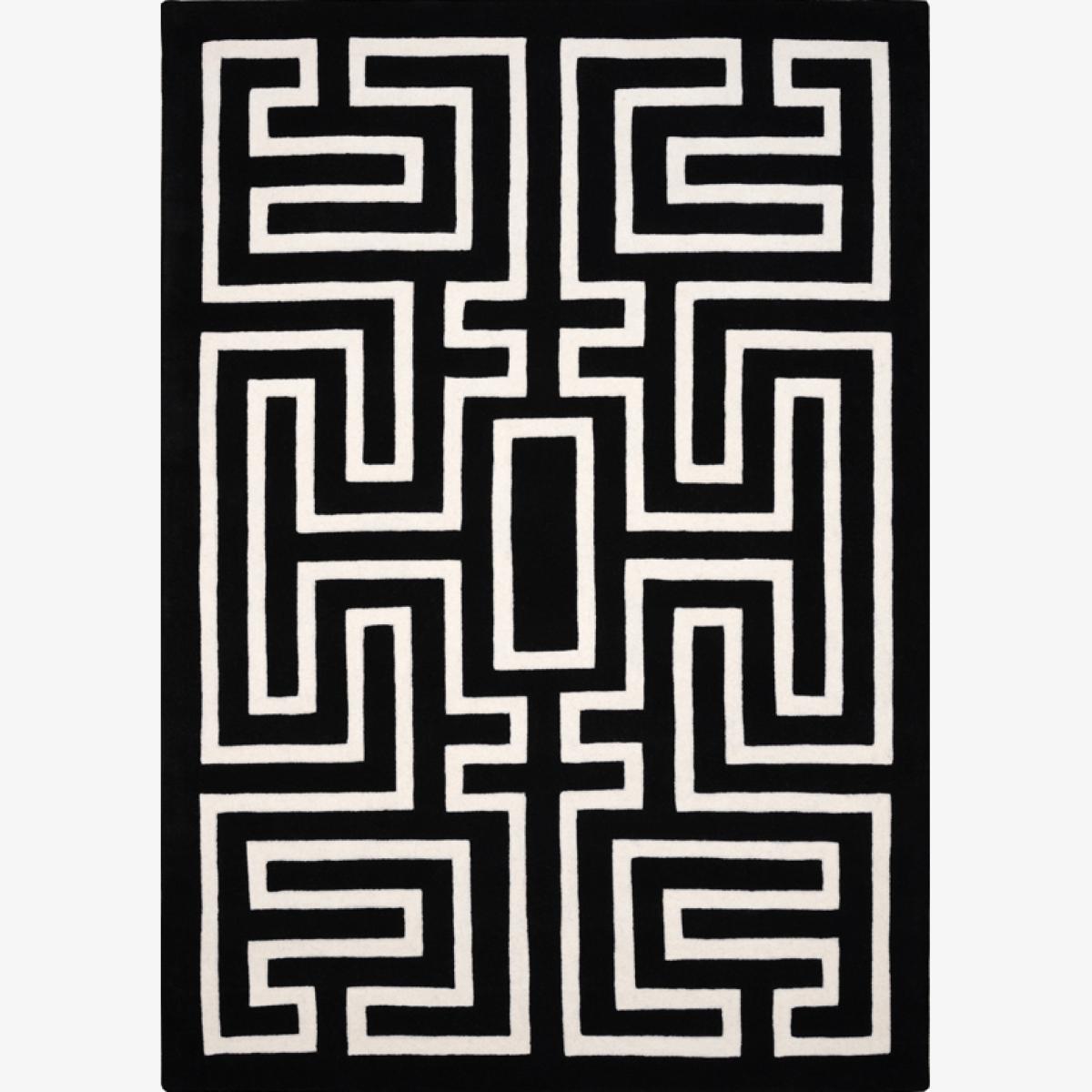 A labyrinth inspired monochrome design featuring a high/low loop cut pile. Hand Tufted 100% Wool. Wool rugs shed fibres during vacuum cleaning and everyday use; this is not a fault but a natural characteristic. Please use only suction type vacuum cleaner as rotating brush vacuum may damage the rug. Spills should be cleaned immediately to help avoid staining – use a clean white absorbent cloth to dab the spillage, avoid scrubbing.