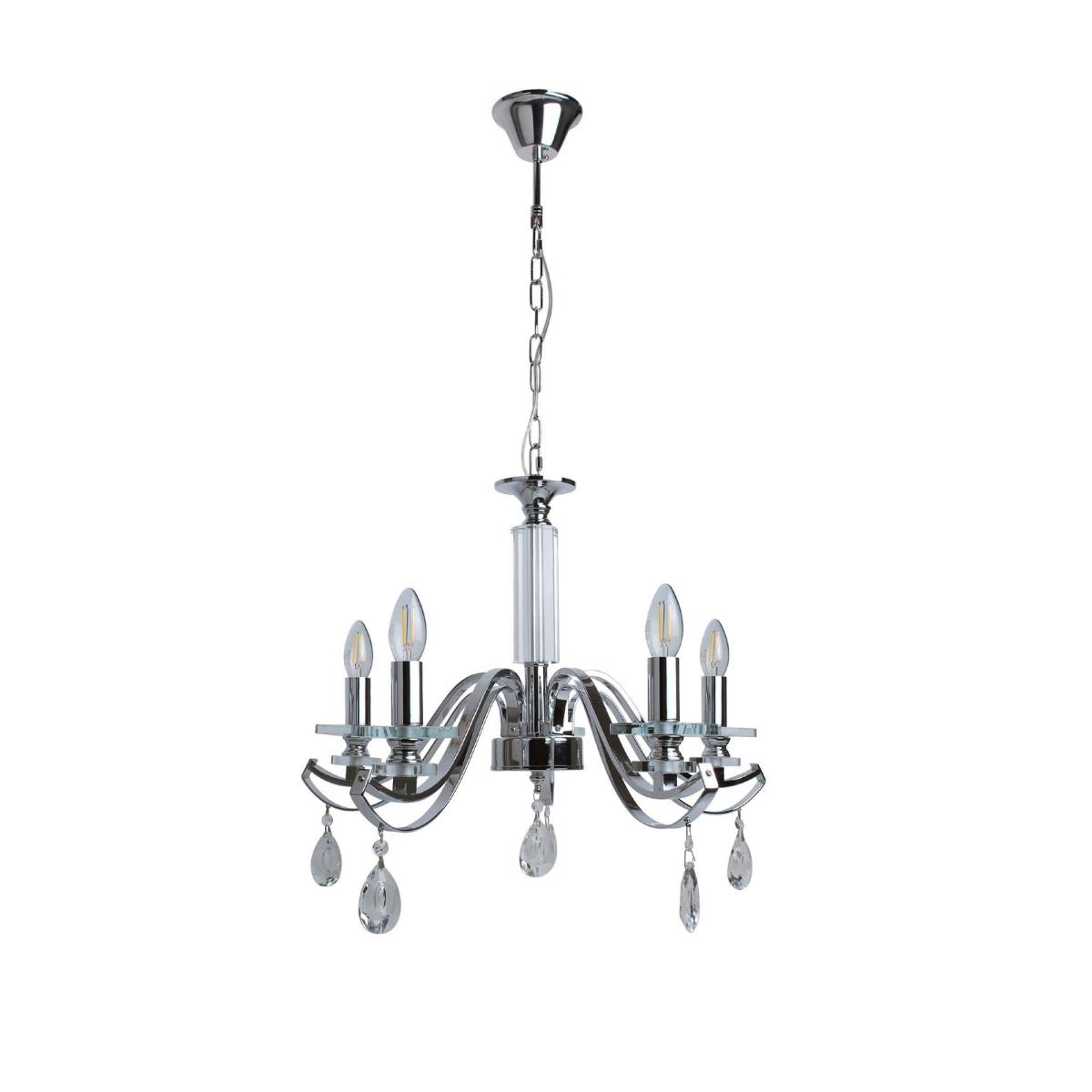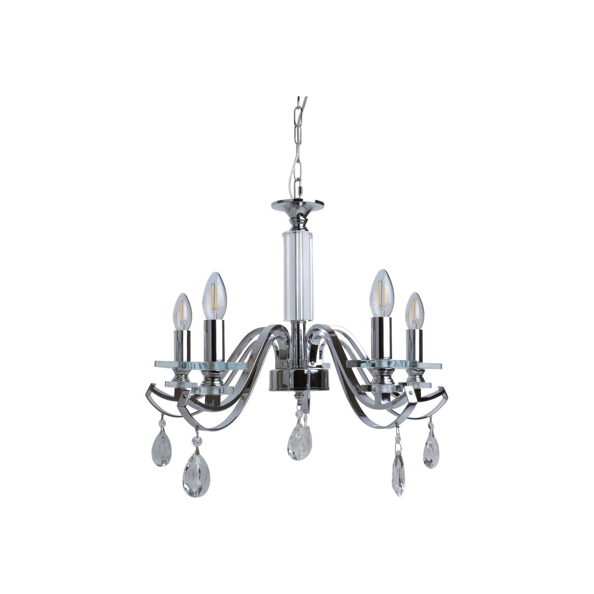 Evangeline Polished Chrome and Crystal 5 Light Chandelier
