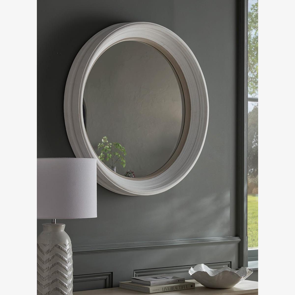 The Evanston mirror is a versatile piece that works well in both traditional and contemporary interiors. I love its sizeable, round silhouette which adds a sense of space and light, making it particularly effective in smaller rooms or narrow hallways. When styling, consider positioning it above a console or sideboard for a practical use, or leaning it against a wall for a more relaxed, layered look. Its neutral tone and classic shape allow it to effortlessly complement various colour schemes and decor styles, while also reflecting natural light to brighten up the space. To elevate the look, pair it with sleek metallic accents or paired with soft textures for a balanced aesthetic.