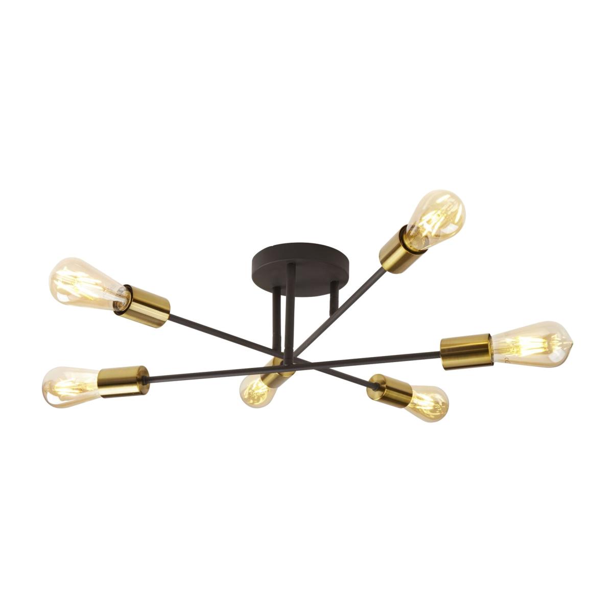 Fusing contemporary and industrial design, the 6 light semi-flush ceiling light can fit perfectly into any modern or more traditional home. The matt black finish is complemented with the satin brass lampholders, highlighting the exposed lamps for an industrial feel. Ideal for rooms with lower ceilings, this semi-flush will elevate any bedroom, living room or dining room.