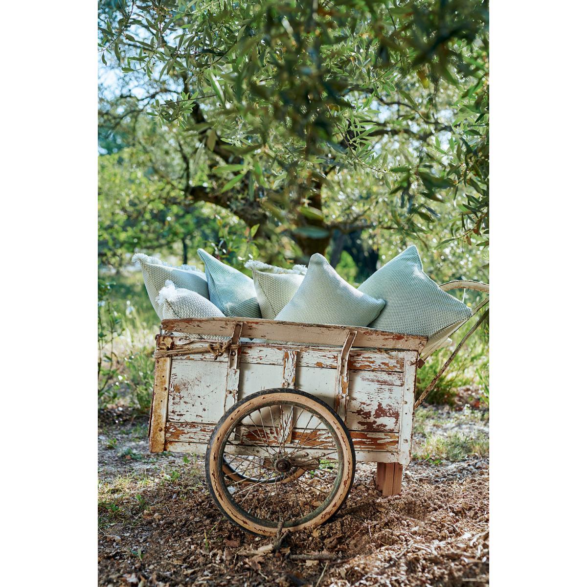 A collection of cushions for outdoor use that invites us instantly to travel and escape. Inspired by the nomadic world, travel and encounters, these blended cushions take us far away in the blink of an eye. Evasion is the ideal range to bring a bohemian, cosy touch to your terrace or garden. Each cushion is upholstered with a relief Jacquard fabric inspired by traditional baskets, giving them both character and an authentic look. The surface of these cushions is rich, luminous and tactile to immerse us in a vibrant, warm atmosphere. In addition, Evasion’s soft colours form a poetic, graphic whole. The fabric covering has a water-repellent Teflon® finish, is anti-UV and stain- and moisture-proof. Easy to look after, these cushions have removable covers which are machine-washable (30°C).