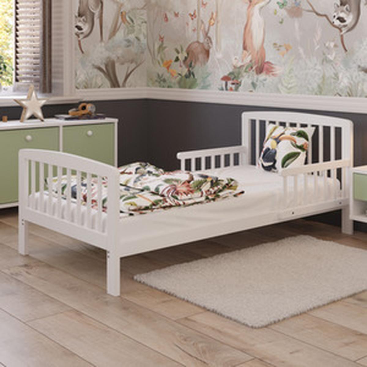 Introducing the Eve Junior Bed - a perfect and snug solution specially designed for your child's bedroom. Carefully constructed using sturdy solid pine wood, this bed ensures durability, serving your little one for up to 14 years or until they reach a height of 1.5m. With its tall sides, the bed offers enhanced safety, reducing the risk of accidental falls during sleep. Furthermore, the bed features a low ground level, making it effortlessly accessible for your child to get in and out of bed. What's included: Eve Junior bed 160x80cm, two detachable wooden guard rails, bed slats. Mattress is NOT included.