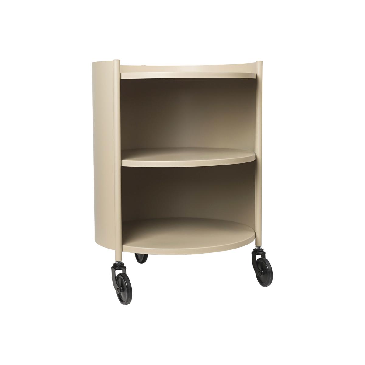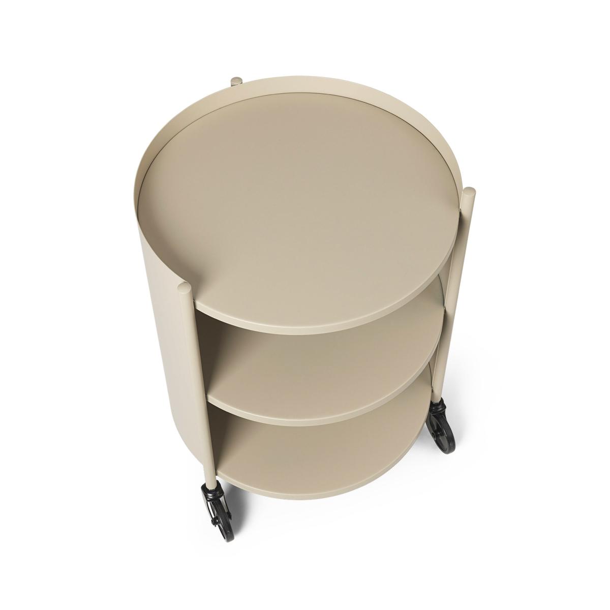 The Eve storage unit is a versatile item of furniture with an appealing cylindrical shape and three large wheels. It is made from thermo-lacquered steel and is extremely sturdy. It has three shelves, two of which are partially hidden behind its sleek frame. The Eve storage unit will work well in any room in the house, and is sure to fulfil all your varying storage needs: study, kitchen, bathroom, bedroom or living room. It can be used as a bedside table, mini-bar, trolley or side table etc. This mobile unit on wheels can be easily moved from one room to another.