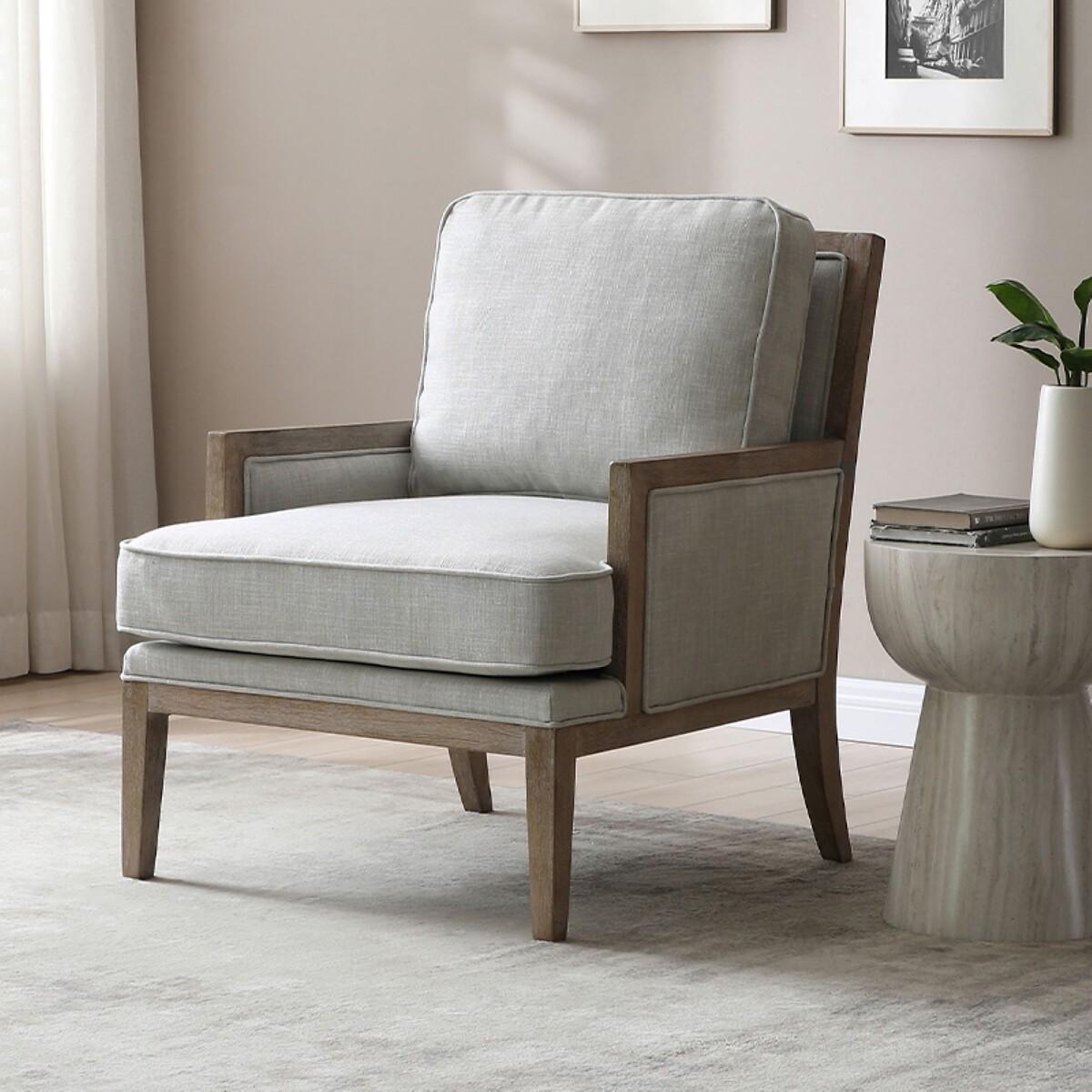 A vintage-inspired rattan accent chair with an antique wood effect frame, the Evelina is designed with linen panel detailing on the arms and back, and features a supportive pocket-sprung seat upholstered in a textured linen-blend fabric with piped edges. Perfect for adding timeless charm to any living space. Product details • Linen mix upholstered cushions with piping detail • Hardwood hevea wood frame in antique finish stain • Linen upholstered panelled back and arms • Removable cushions with fixed covers • Reversible cushions (fully finished both sides) with foam fillings • Pocket spring seat for added support • Medium comfort level • Delivered fully assembled • Care advice: specialist upholstery cleaner recommended • 12 month manufacturers warranty. Product Composition - Frame - Rubberwood + Plywood Fabric - 30% cotton, 18% Polyester, 44% Viscose, 8% Linen Seat - Fabric + Foam + Spring Bag. Product Dimensions • Total dimensions: 81 cm x 69 cm x 92 cm, Weight 18 kg • Seat Height: 49 cm • Seat Width: 70 cm • Seat Depth: 50 cm • Back height: 44 cm • Arm height: 58.5 cm • Clearance to floor: 23 cm Package Dimensions - 90 cm x 84 cm x 71 cm, Weight 20 kg. This product will be dispatched by one of our trusted suppliers. You’ll be contacted by their selected courier about your delivery. Please note: this product cannot be delivered to all Offshore Islands, Northern Ireland or Republic of Ireland.