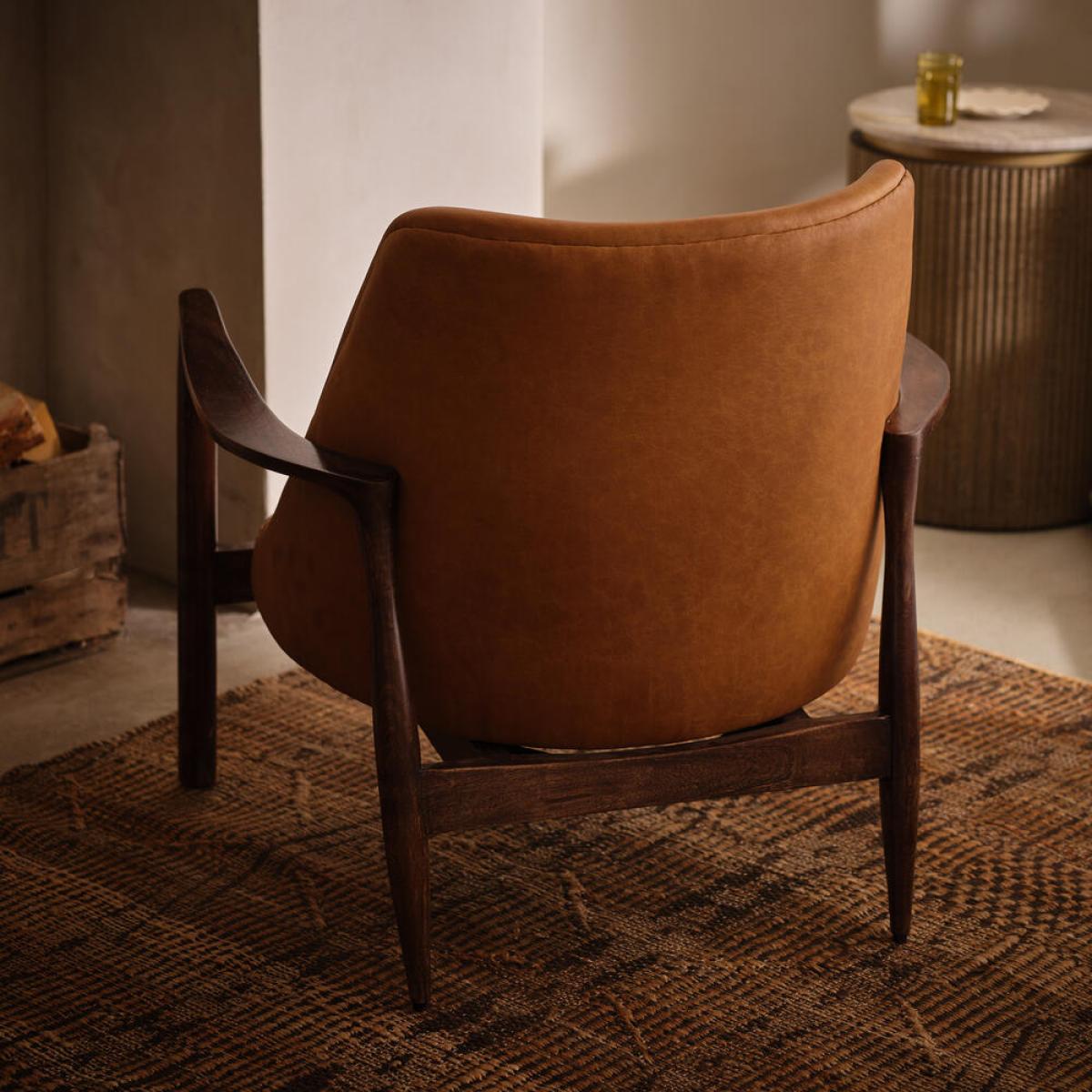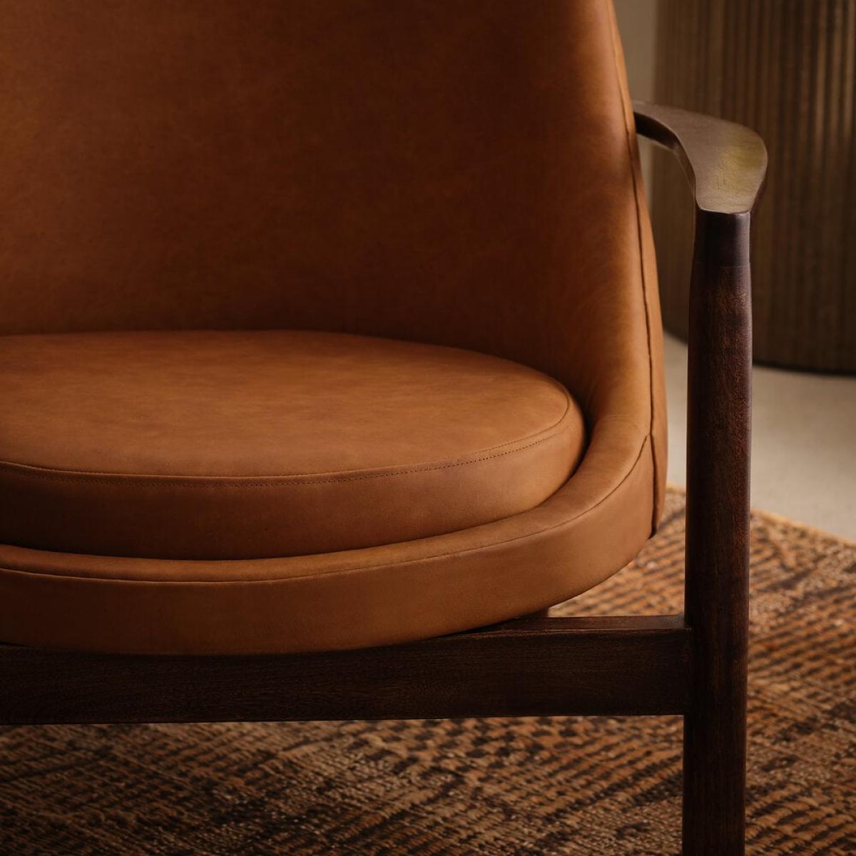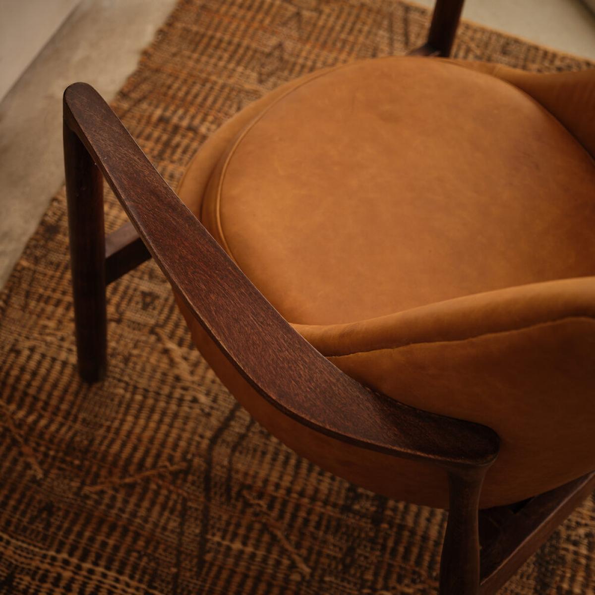 With its mid-century look and feel, our Evelyn Armchair in Tan Leather has all the charm and qualities of a true design classic and is the perfect statement accent chair for any living space. Its soft leather seat and back are ergonomically sculpted for excellent support while the soft leather upholstery is comfy and cocooning. The natural wooden frame enhances the organic look of this classic retro piece that will effortlessly match with any interior.