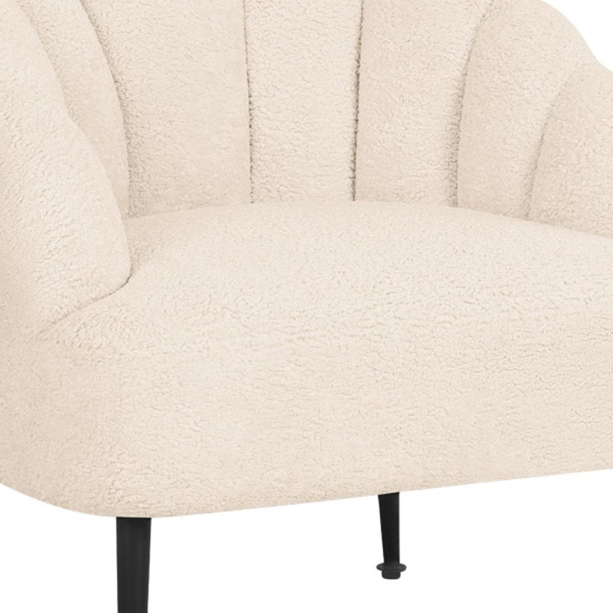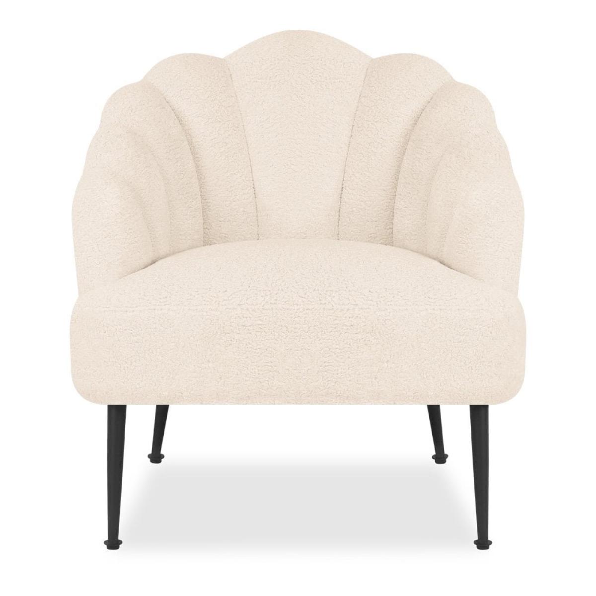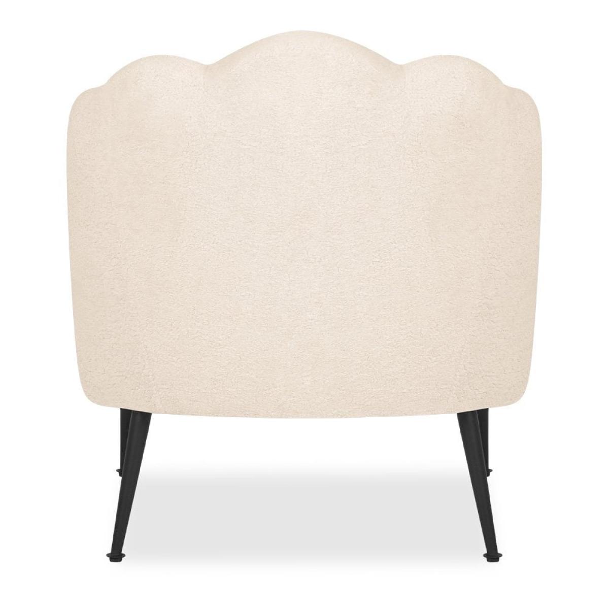 Sit back in style with the Evelyn accent chair. Featuring; an upholstered ivory white boucle padded chair, curved backrest with a scallop-edge design and a cushioned seat attached to four brass metal legs - making this chair the perfect place to relax and unwind. The Evelyn Accent Chair ticks all the boxes if you’re looking to add a boudoir feel to your bedroom, living room, or lounge area. Available in a range of velvet colours, this show-stopping chair exudes glamour in any space and looks impeccable when paired with a sofa of your choice. View The Evelyn Range