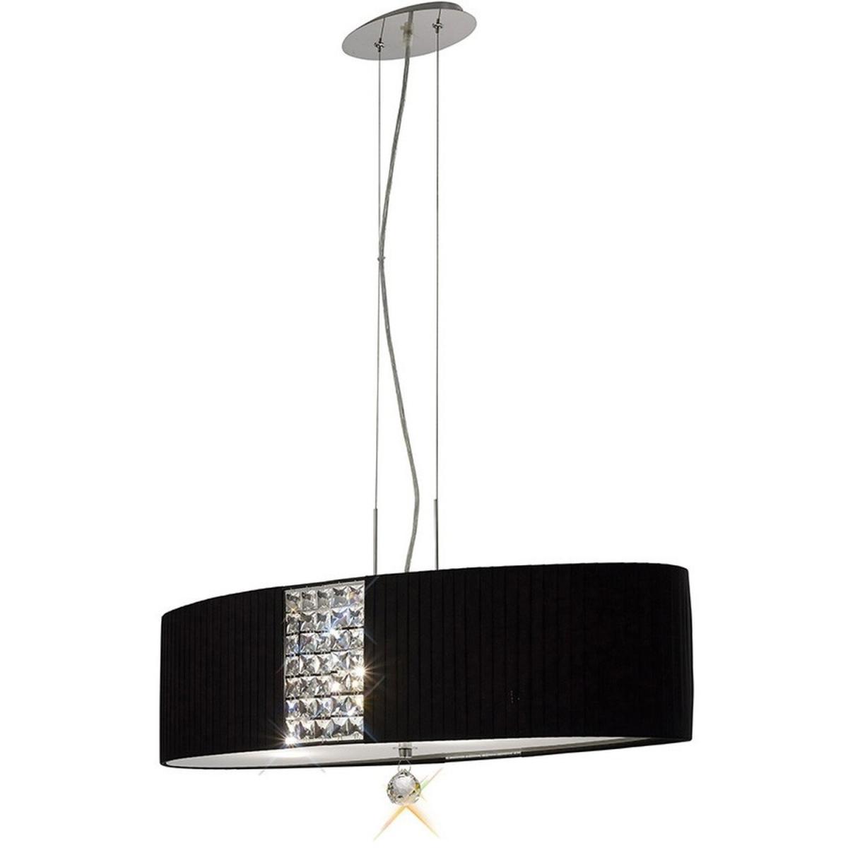 A gorgeous suite of flush and ceiling pendants, wall, and table lamps in a Polished Chrome finish. The Black and Cream fabric Gauze shades are complimented with square cut crystals making this collection of light fitting truly exquisite. The combination of crystal and fabric creates elegance and the impact yet remains contemporary overall. With the added advantage that each of the oval and round pendants can be converted to semi-flush makes this collection even more desirable.