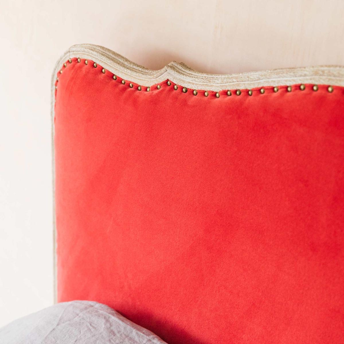 I love this velvet super king, as it adds a real touch of luxe to any bedroom. Its rich coral tone is vibrant but versatile, working well in both contemporary and eclectic interiors. For a more modern look, pair it with neutral bedding and minimalist accessories, allowing the bed to be the focal point. If you prefer a cosy, layered aesthetic, try mixing in textured throws, patterned cushions, and metallic accents to elevate the overall look. Practical styling tips include keeping surrounding furniture simple to let the bed stand out or pairing it with understated bedside tables and lamps for a balanced, polished feel. It’s a statement piece that can really anchor a room while offering comfort and style.