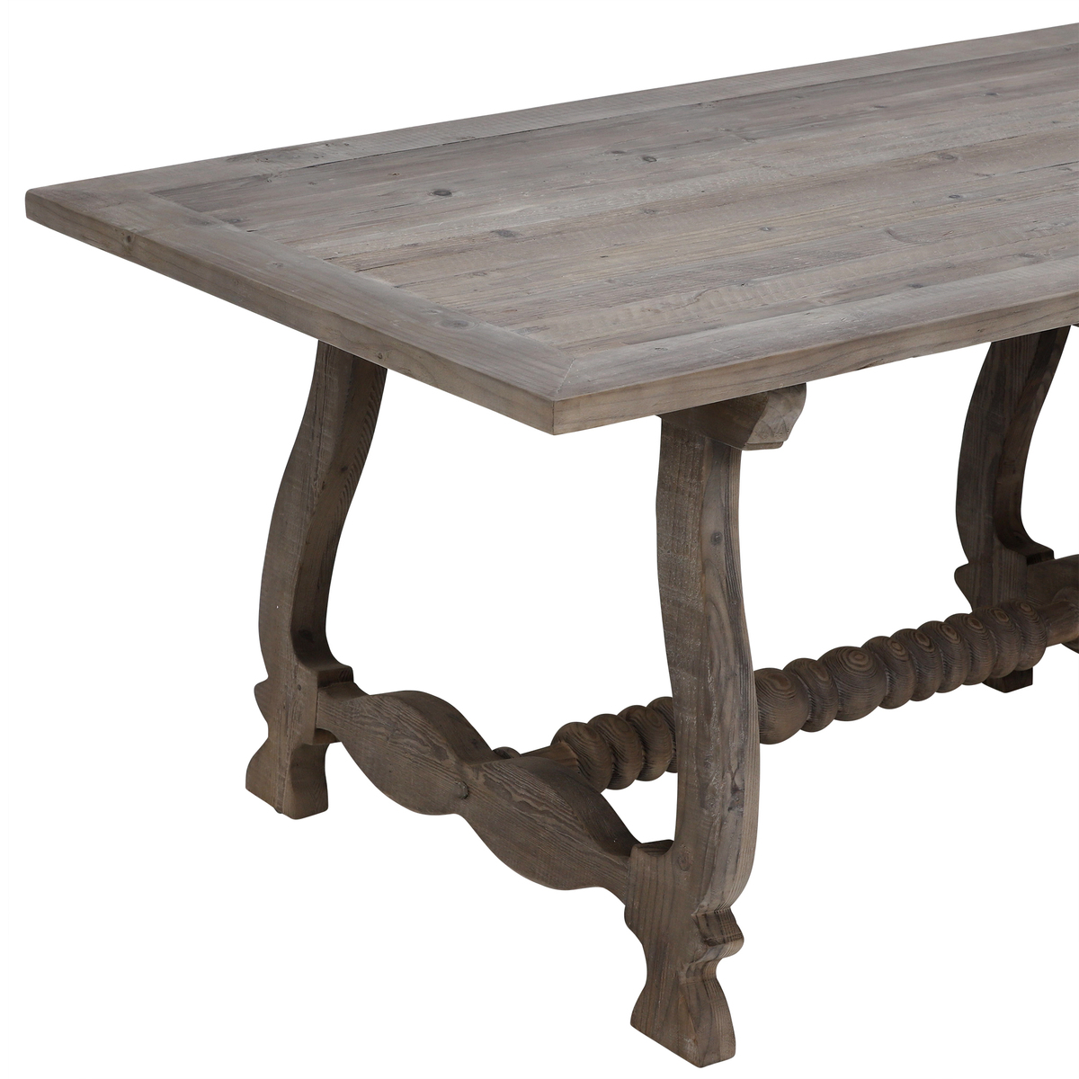 I love the Evelyn dining table for its versatile, rustic appeal and muted smoky grey tone, which works beautifully across both contemporary and traditional interiors. It’s a great choice for creating a relaxed, inviting dining space-pair it with upholstered or wooden chairs depending on your style. Its substantial yet understated design makes it suitable for larger family gatherings or casual weekend meals. To style it effectively, consider keeping accessories minimal; a simple runner or centrepiece adds elegance without overpowering the natural grain of the wood. This table works particularly well in open-plan kitchens or farmhouse-inspired spaces, where its sturdy construction and organic finish can really shine.