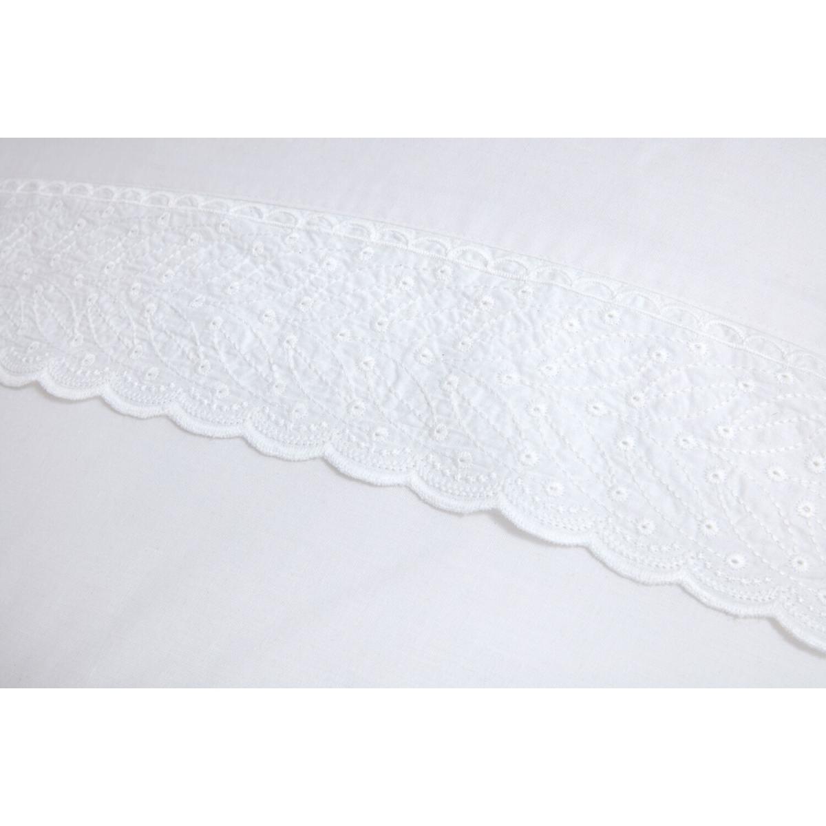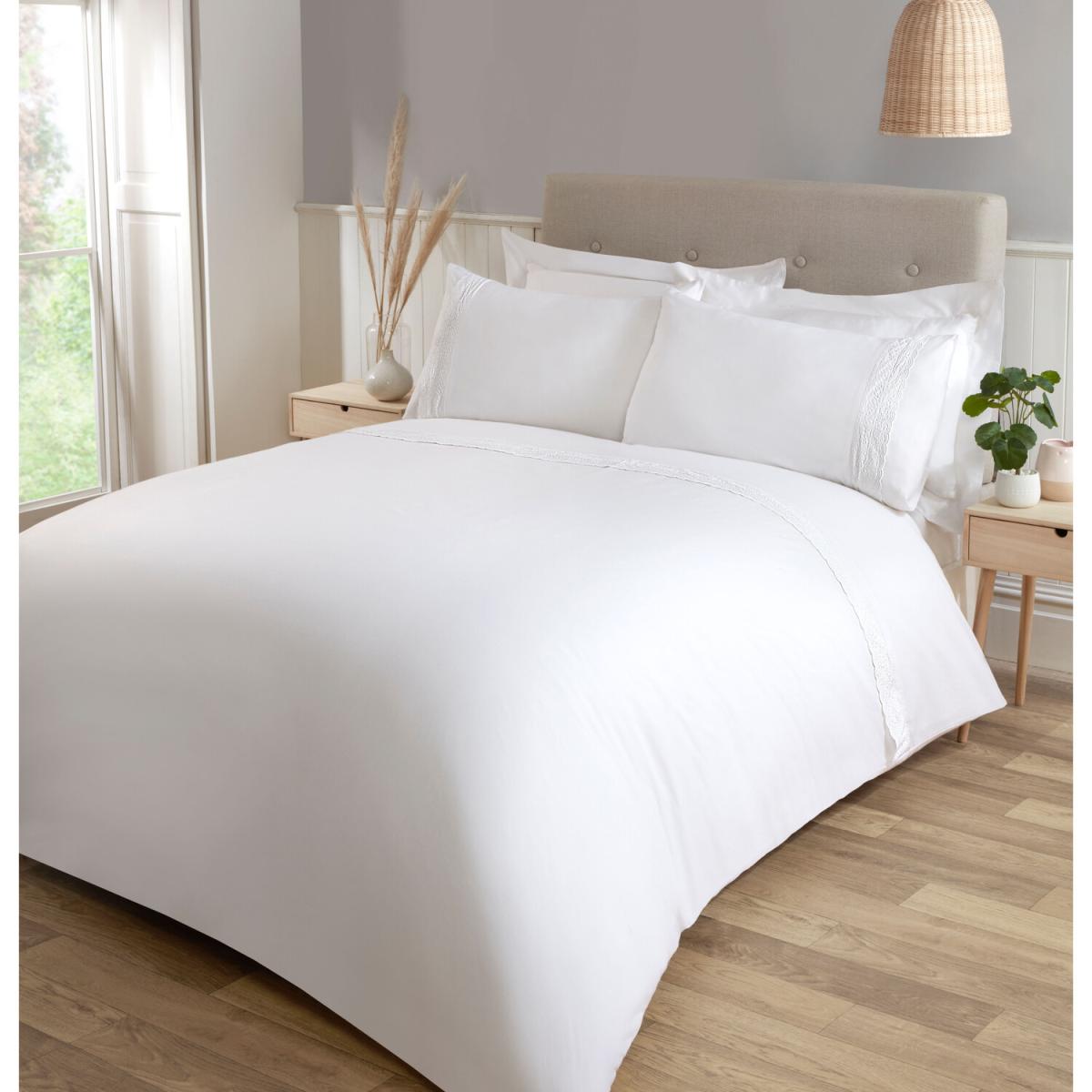 In a crisp and clean design, this Evelyn Embroidered Duvet Cover and Pillowcase Set will add a touch of sophistication and elegance to your bedroom. Featuring a delicate leaf lace design, this broderie Anglaise style bedding set is a great way to add some luxury to your home.