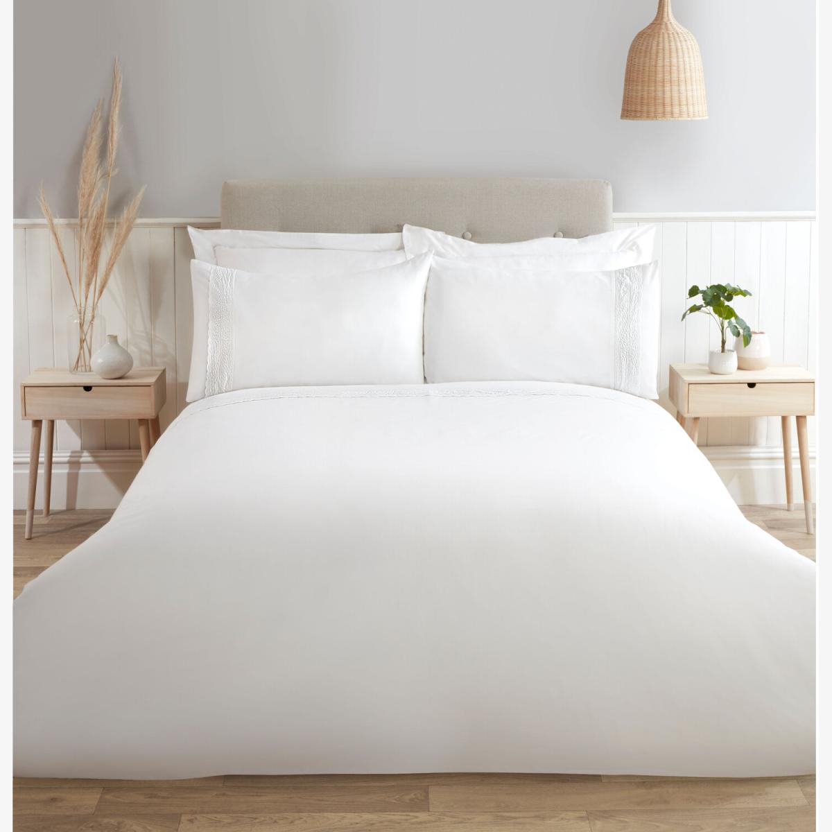 Evelyn Embroidered Duvet Cover and Pillowcase Set - White / King size