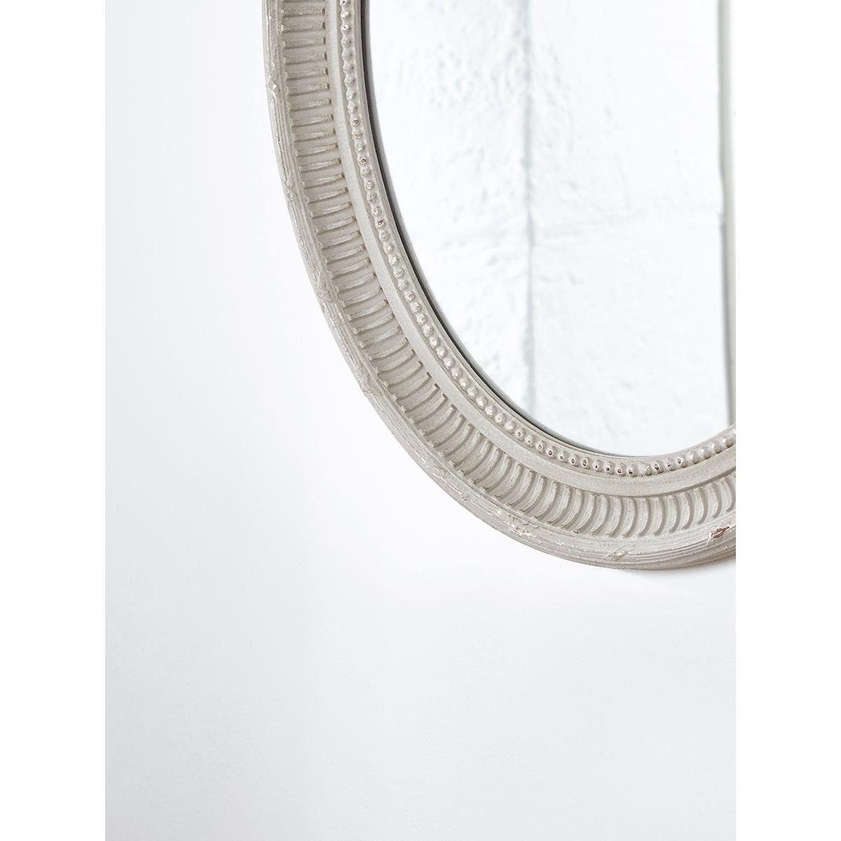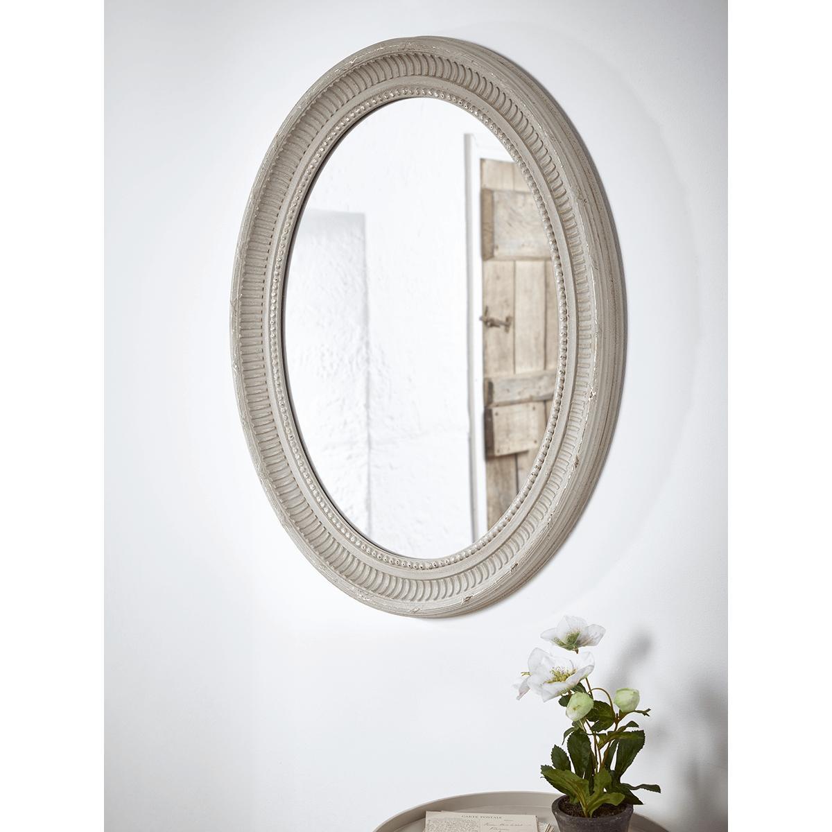 Finished in soft grey with a subtle distressed look, our large oval Evelyn Mirror has been carefully made from paulownia wood. Each weighty frame features a soft ridged edge and beaded details, as well as two picture hooks on the reverse so this mirror can be hung landscape or portrait to suit your space.