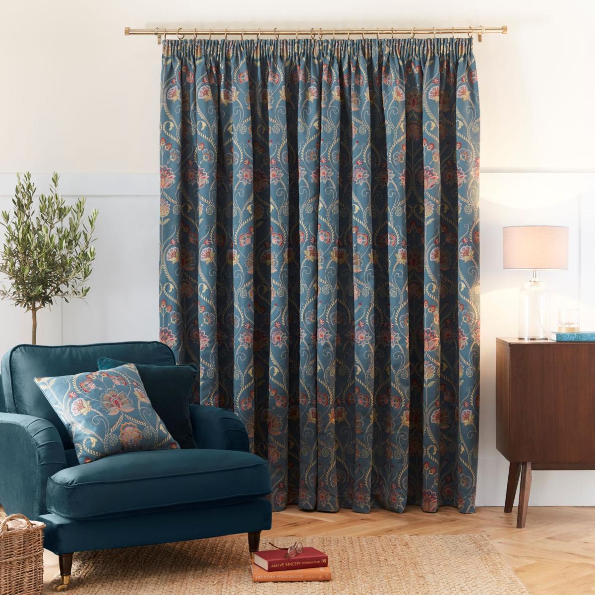 * Includes 2 x curtain panels* Pencil pleat header* Timeless floral embroidery design* Dry clean only* Regular lining A simply stunning embroidery inspired by the arts and craft movement. , this Evelyn mix of pattern and colour will add a show stopping look to any interior with the mix of colour against a natural coloured base. These luxury curtains are available in a timeless pencil pleat header and feature weighted corners for that added luxurious finish. Available in another colourway and other sizes to fit your window fitting. This collection is verified by OEKO-TEX and independently tested for harmful substances as well as manufactured using sustainable processes under socially responsible working conditions.
