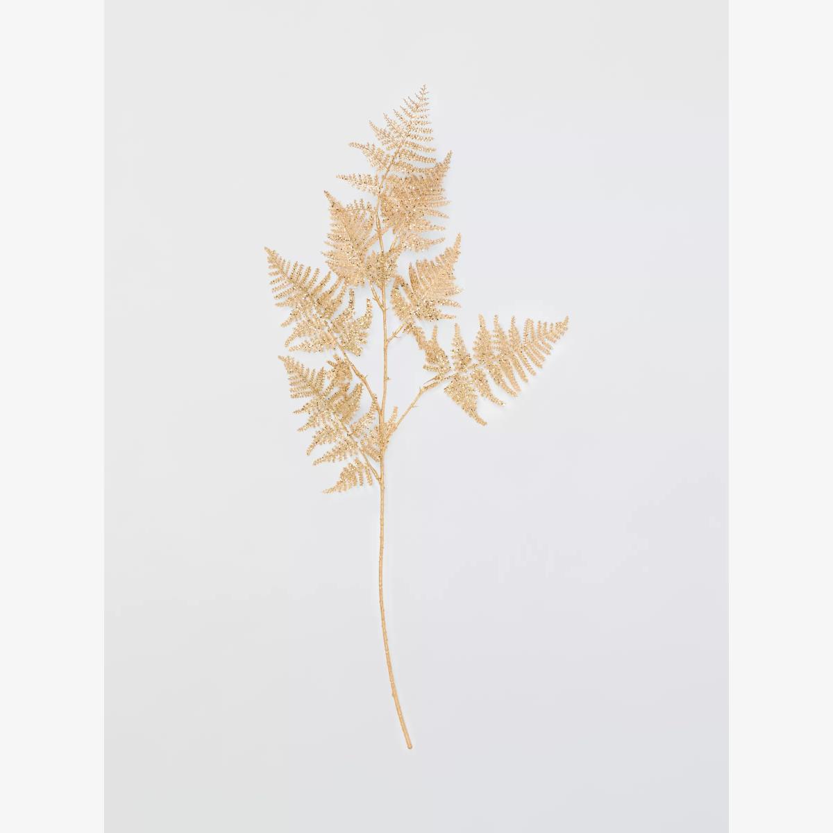 I love this fern stem for its versatile and understated elegance, making it a great addition to both modern and traditional interiors. Its gold finish lends a subtle touch of luxury, perfect for staging console tables, centrepieces, or filling empty corner shelves. As a stylist, I recommend pairing it with other metallic accents or natural textures to create a cohesive look. Practical styling tips include placing it in a clear or neutral vase for a streamlined effect, or grouping multiple stems together for a more lush, statement display. Given its artificial nature, it’s ideal for high-traffic or low-light spaces where real plants might struggle to thrive.