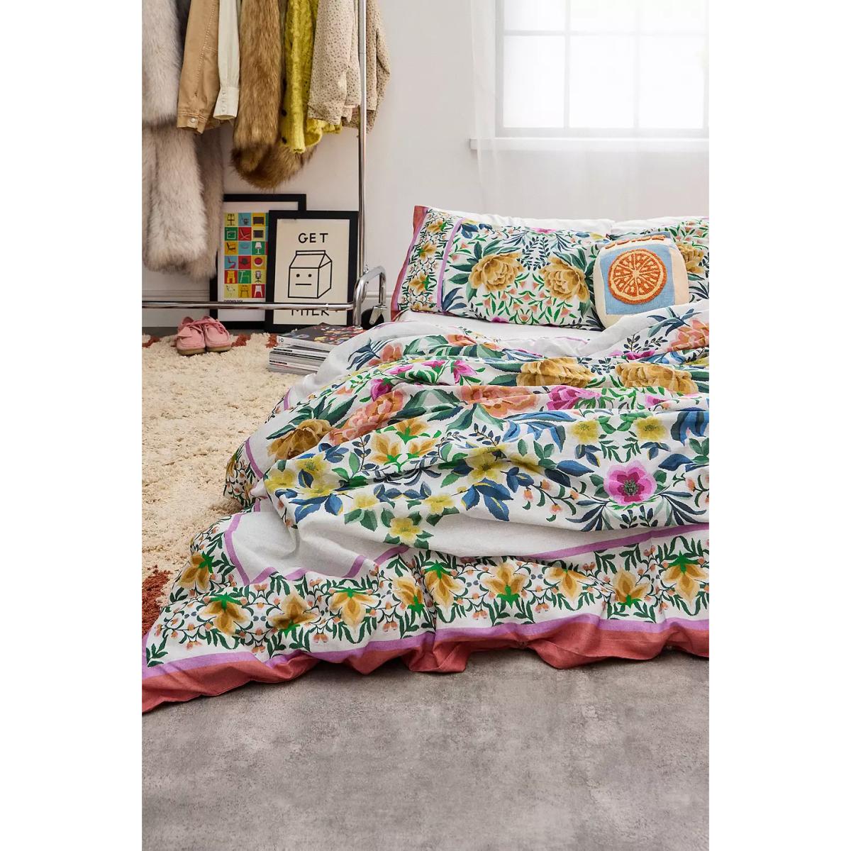 Curl up in a bed of flowers with this pretty floral duvet set. The soft cotton bedding set features a matching duvet cover and pillowcases topped with an all-over print. **Content + Care** \- 100% Cotton \- Machine wash **Size** \- Single (includes 1 pillowcase): 135cm (W) x 200cm (H) \- Double (includes 2 pillowcases): 200cm (W) x 200cm (H) \- King (includes 2 pillowcases): 230cm (W) x 220cm (H) \- Pillowcase: 75cm x 50cm
