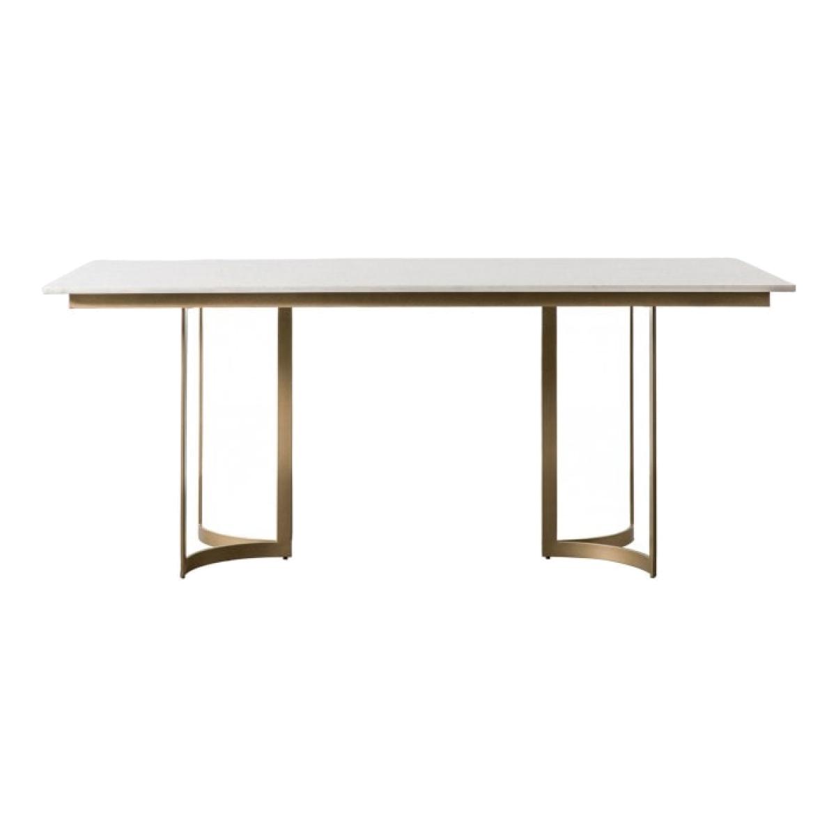 The Everton 180cm stone dining table with brass accents offers a sophisticated centrepiece that combines elegance with practicality. I love how its clean, modern lines paired with the warm brass details make it versatile enough to work in both contemporary and luxurious interiors, as well as in more eclectic settings. For styling tips, consider pairing it with upholstered dining chairs in neutral or textured fabrics to soften the look, or go bold with colourful or patterned options for contrast. Its neutral stone top provides a practical surface that’s easy to clean, making it suitable for everyday dining or more formal occasions. To keep the look balanced, add minimal accessories like a sleek centrepiece or candlesticks, which will highlight the brass without overwhelming the space.