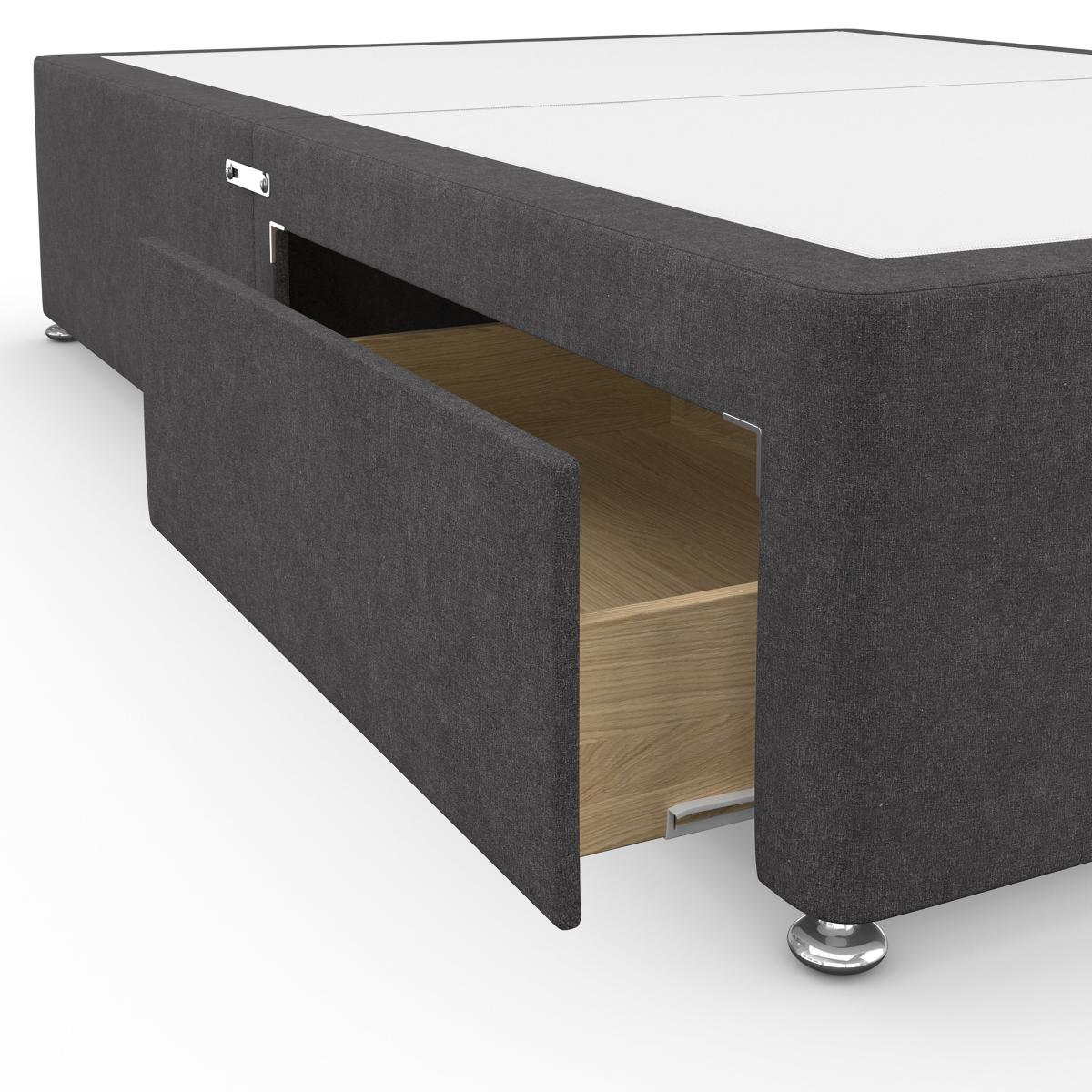 * High quality timber construction* Platform top base for added support* Suitable for any headboard type* Supports all types of mattresses* Choice of fabric colours* Various drawer options available* Easy assembly* Made in the UK* **Please note**: Headboard is not included. For the ultimate style and storage solution for your bedroom, look no further than the Platform Top Divan Bed Base. This divan bed base is constructed from high quality timber, provides excellent support for all types of mattresses, and has chrome glider feet which add a beautiful finishing touch. This divan base is available upholstered in a range of high quality fabric colours designed to coordinate with your bedroom for a great cohesive look. This base is also a great space saving solution with an excellent choice of drawer storage options. Please note: The headboard and mattress are not included.