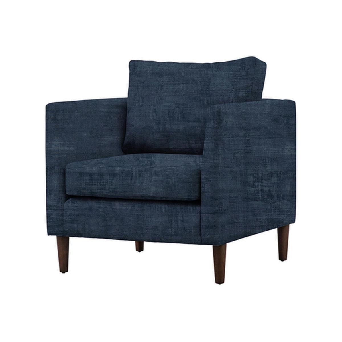 I love this armchair because of its sleek design and versatile denim blue upholstery, which adds a touch of colour without overwhelming a space. It's a great piece for contemporary interiors or more relaxed, casual rooms, particularly in living rooms or reading nooks. To style it effectively, consider pairing it with neutral-toned cushions or textured throws for added comfort and visual interest. It also works well with wooden or metal accents, making it adaptable across various styles-from Scandi minimalism to more eclectic settings. Practical tips include keeping the surrounding decor simple to let the chair stand out, and ensuring the legs are well-maintained to preserve its streamlined silhouette.