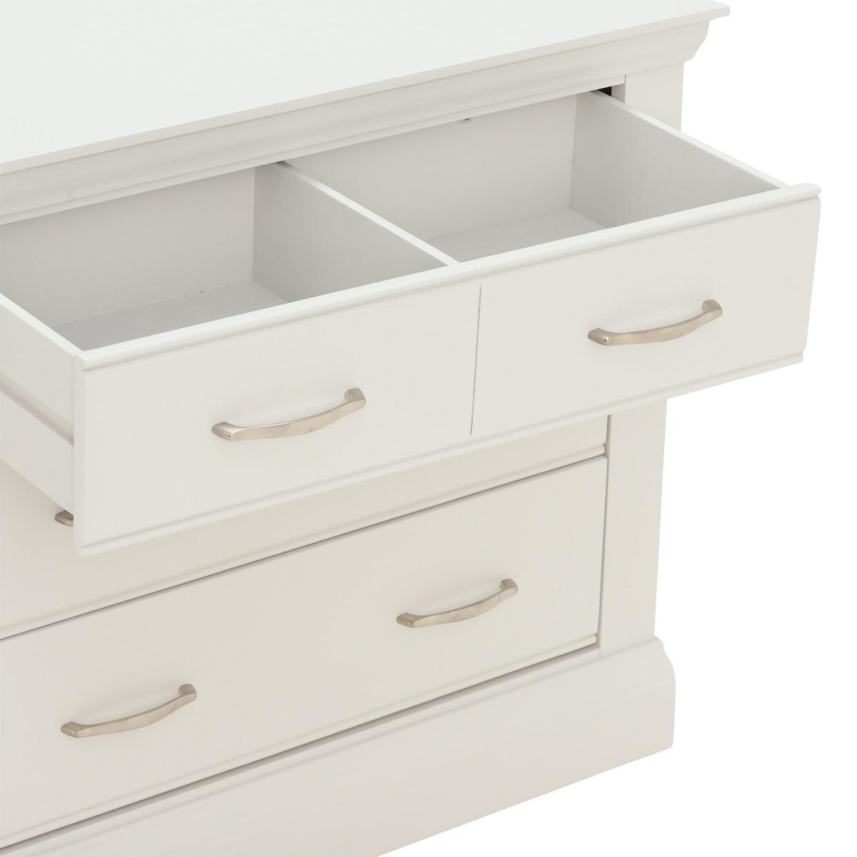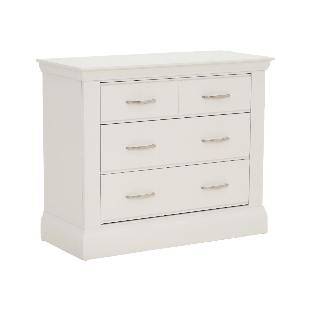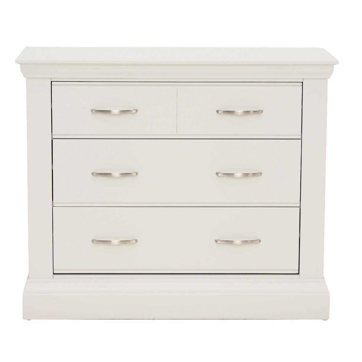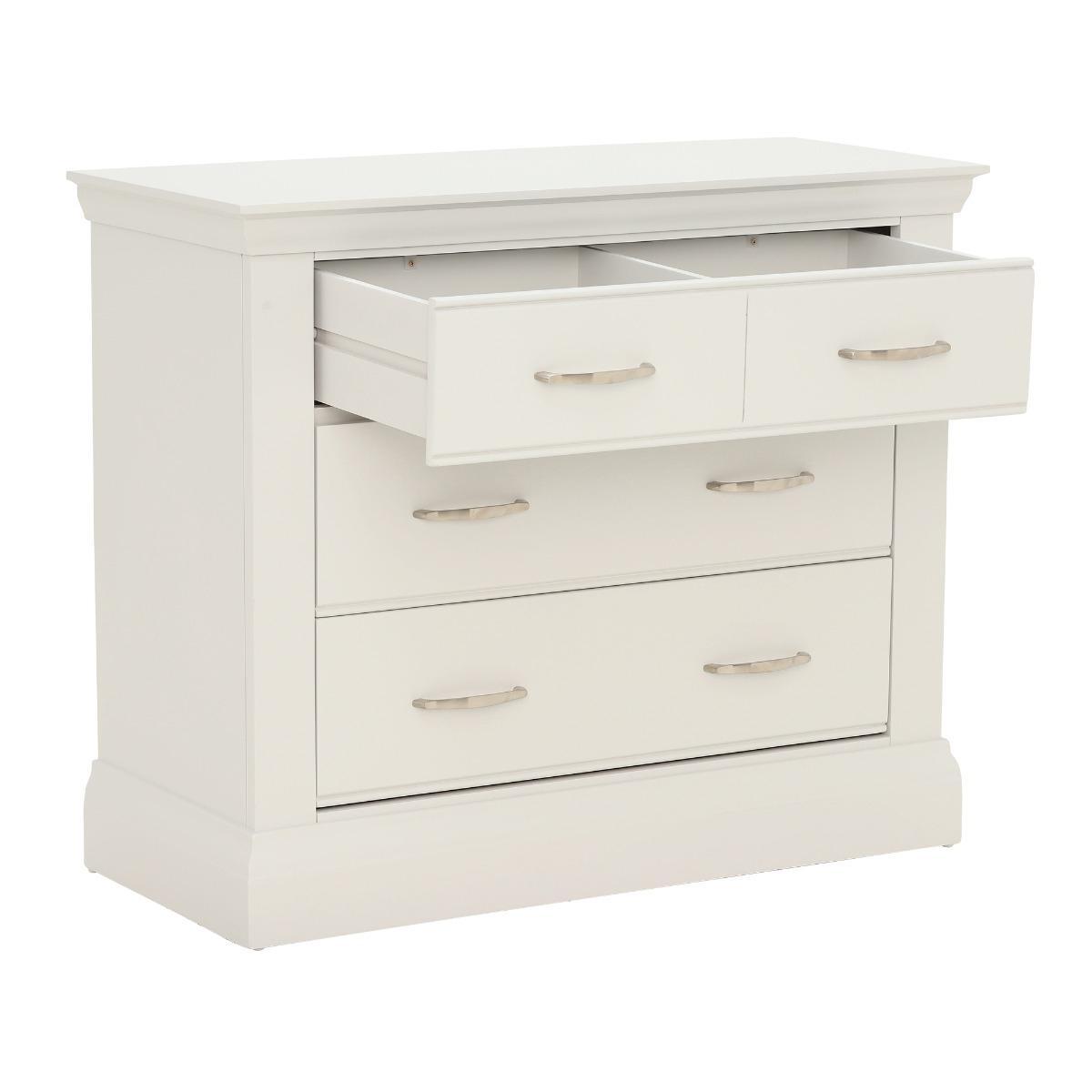 Design. Introduce a fresh and sleek look to your bedroom with the Evesham 2+2 Drawer Chest. The soft fog finish and complimentary metal handles give the Evesham an understated and contemporary look. The Evesham 2+2 Drawer Chest has two smaller drawers to the top and two larger below, providing an ample amount of space for all your clothing.