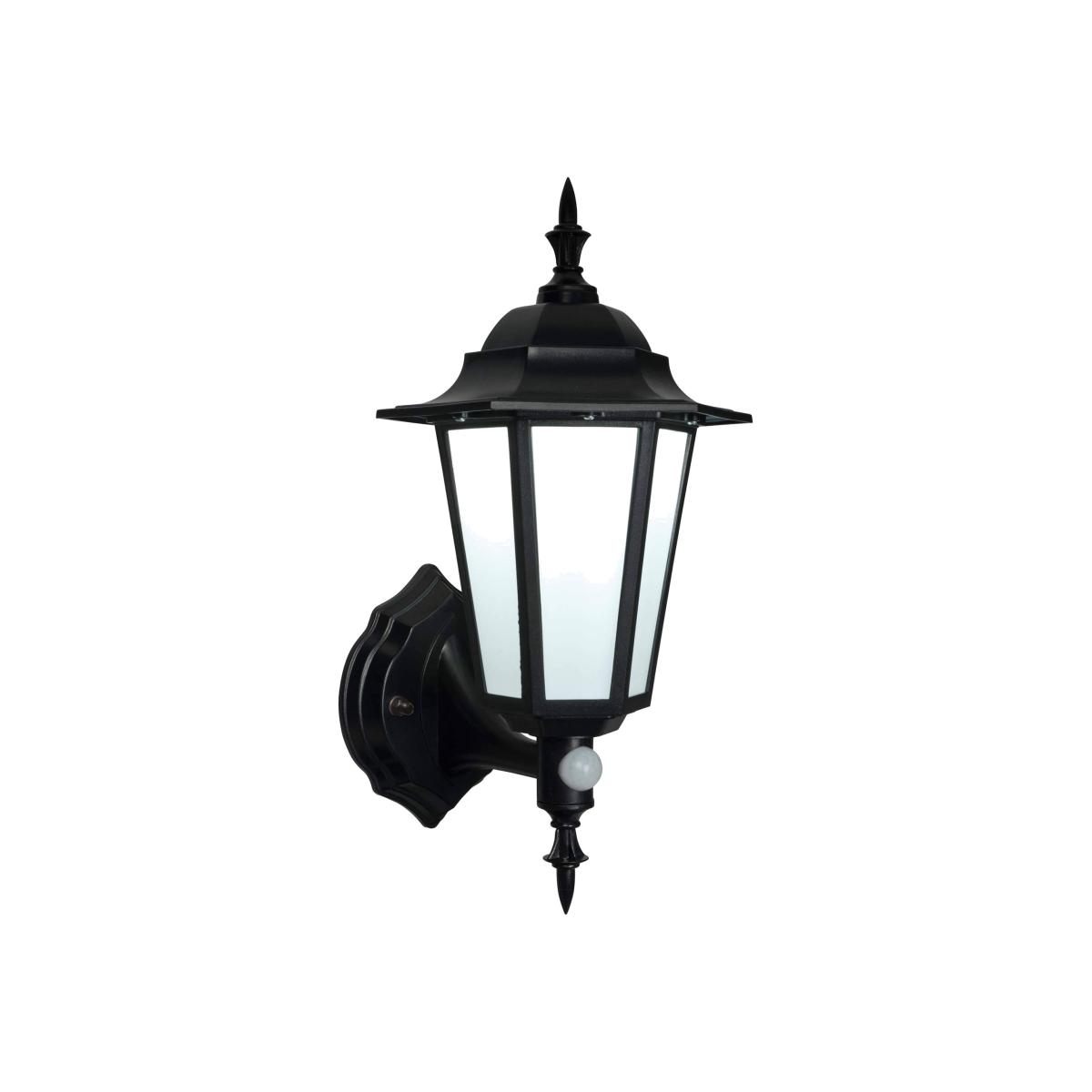 Traditional outdoor wall light boasting a black finish throughout. An elegant addition to your outdoor space, the Evesham LED Wall Light is a traditional piece from Endon. Boasting a matt black finish throughout, the lantern inspired wall bracket features frosted panels and comes with a built in PIR motion sensor which can be activated from a distance of up to 8 meters away, making it idealfor added security.