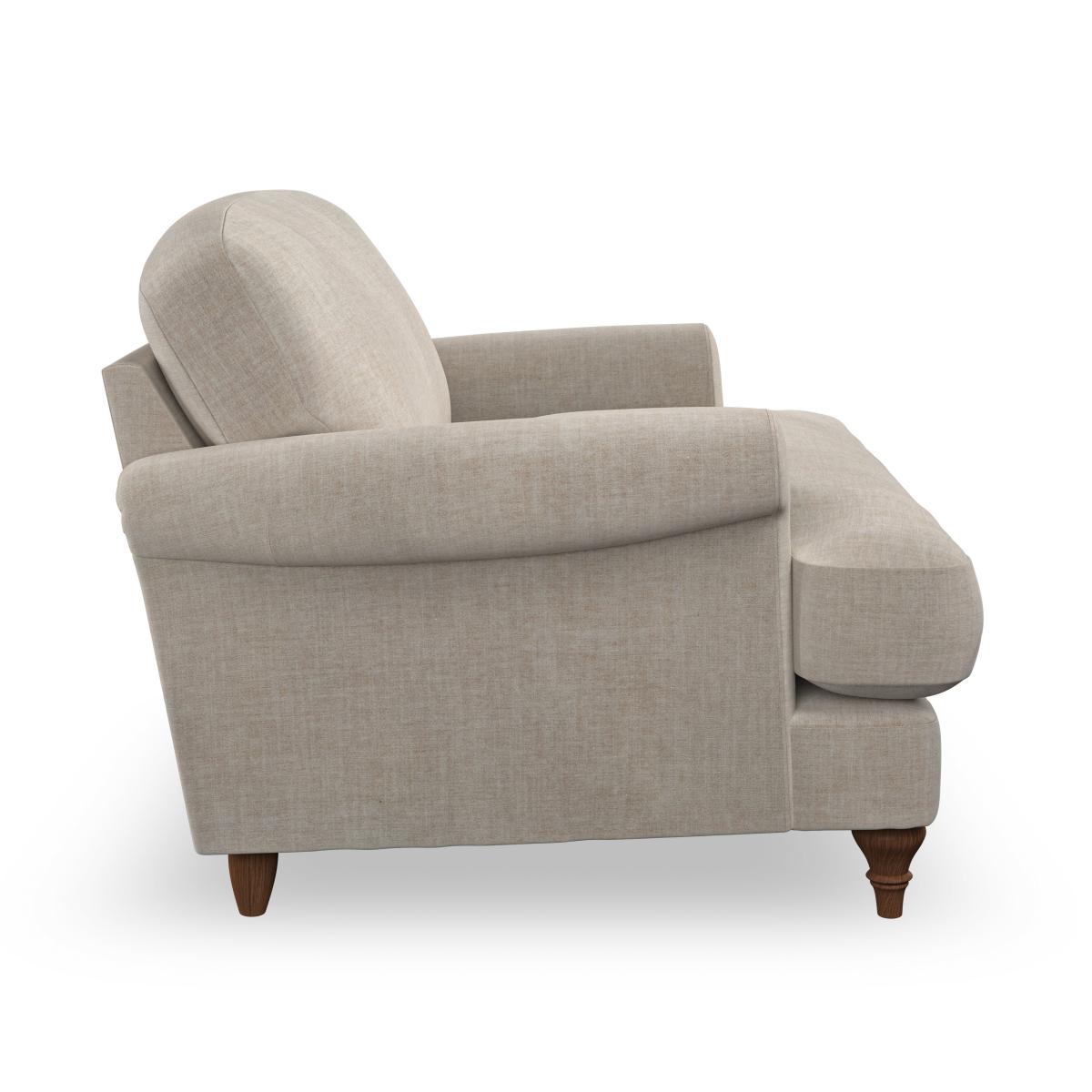 * Elegant, classic design* Scroll Arms* Lugged seat cushion* Serpentine seat springs* Choose your orientation, support, fabric and leg colour The Evie Armchair is a beautifully crafted piece that combines elegance and comfort in a compact design. With its slender scroll arms and tailored seat cushion, this armchair provides a sophisticated accent to any room. The fibre-filled back cushion offers supportive comfort, making it an inviting choice for reading or relaxing. Customise it with your choice of fabric, colour, cushion filling, and leg finish to match your décor.