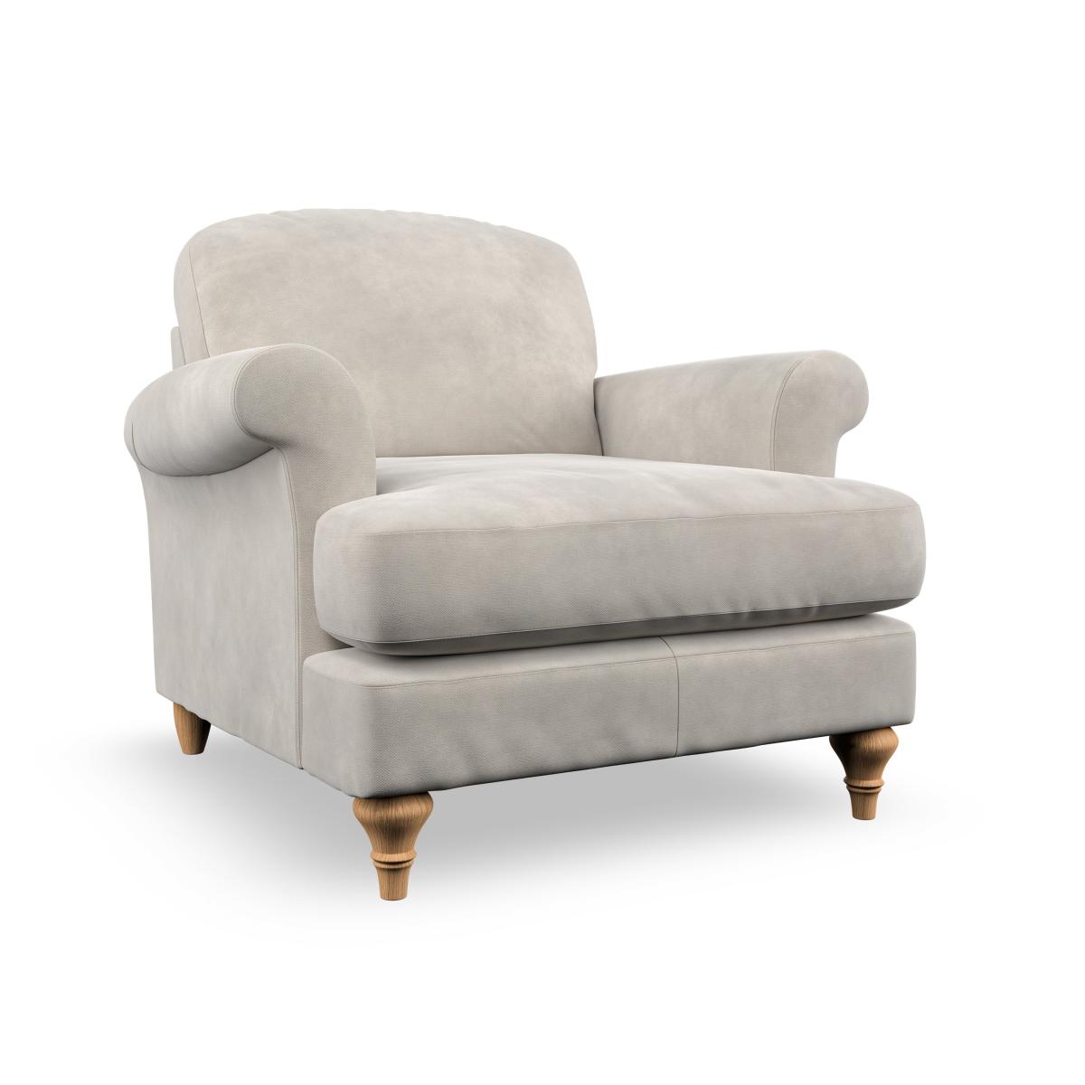 Gabriela Modern Soft Brushed Armchair with Light Wood Legs & Feather Fillings